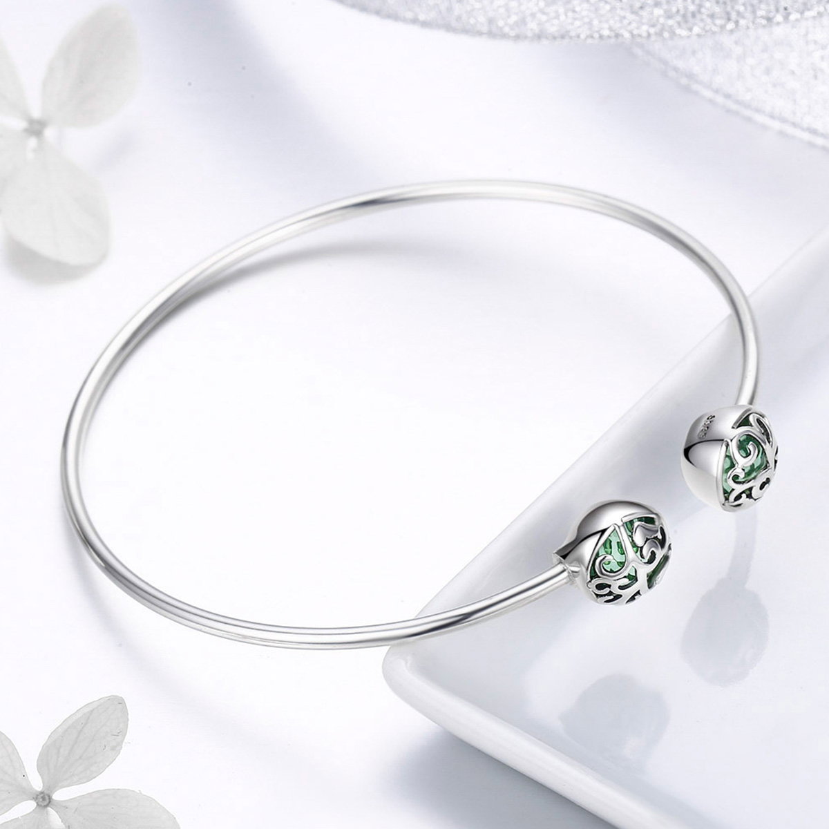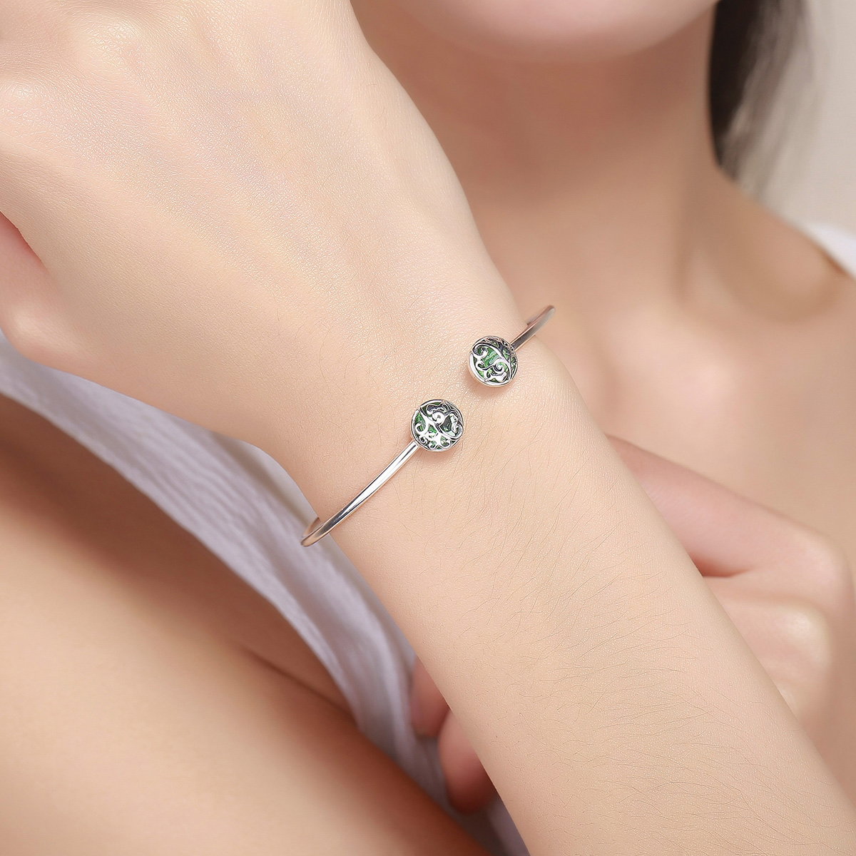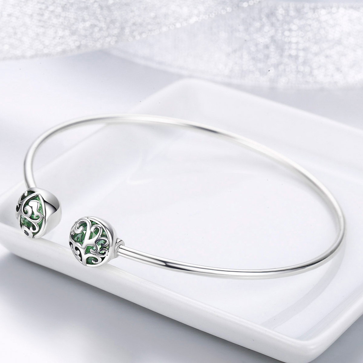 Bratara argint 925 cu copacul vietii si cristale verzi - Be Nature BST0030