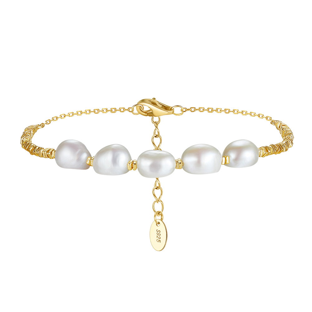 Aceasta bratara delicata, realizata din argint 925 placat cu aur de 14K, emana o eleganta subtila, fiind accesoriul perfect pentru orice ocazie. Perlele naturale de cultura, cu nuante fine si stralucire delicata, aduc o nota de rafinament si poveste. Fiecare detaliu este gandit pentru a reflecta frumusetea si autenticitatea, transformand aceasta bratara intr-o bijuterie ce se remarca prin stralucirea sa de durata. Alege sa porti un simbol al elegantei accesibile, care sa completeze cu stil orice tinuta.