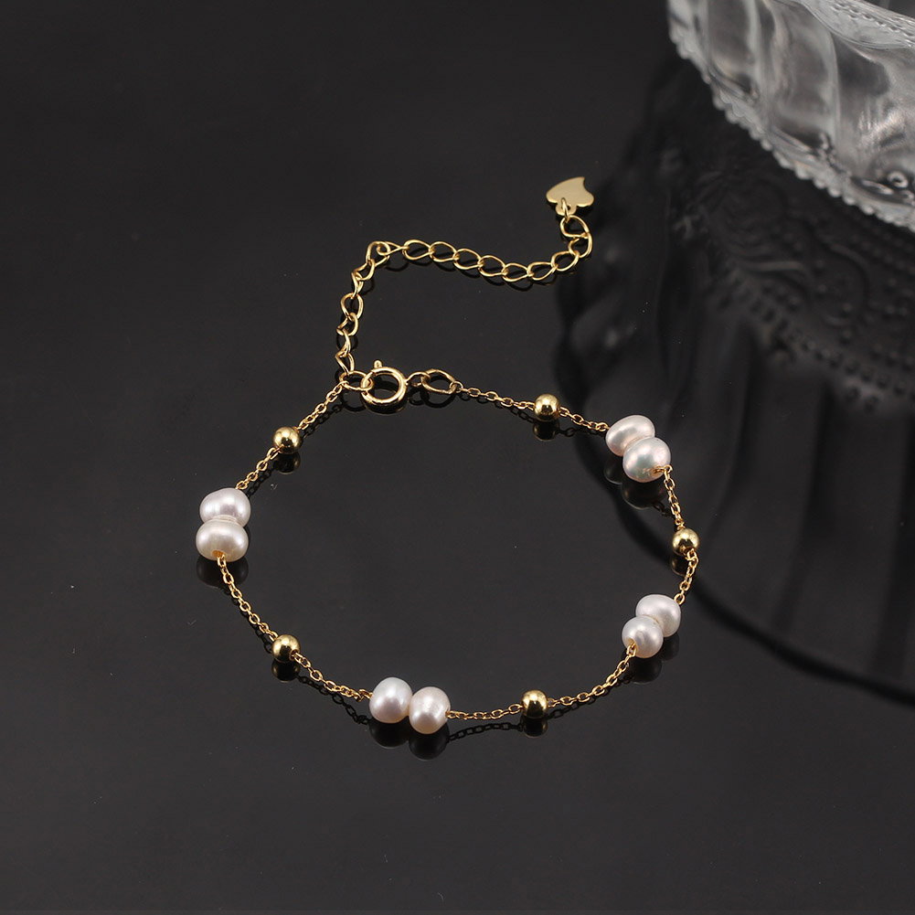 Aceasta bratara BeSpecial imbina caldura aurului 14K cu lumina sidefie a perlelor naturale de apa dulce. Argintul 925 placat cu aur formeaza o linie eleganta, pe care perlele se aseaza ca niste note de muzica, compunand o armonie vizuala delicata. Designul rafinat aduce un accent sofisticat la incheietura, facand din bratara un accesoriu versatil, potrivit atat pentru tinute de zi, cat si pentru ocazii speciale. Este o bijuterie ce vorbeste despre echilibru, feminitate si eleganta atemporala.