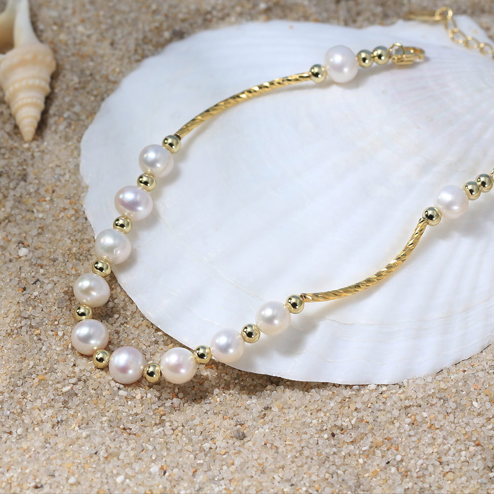 Bratara argint 925 placata cu aur 14K cu perle naturale