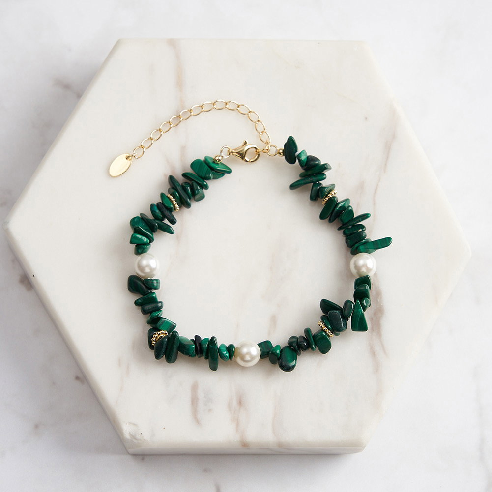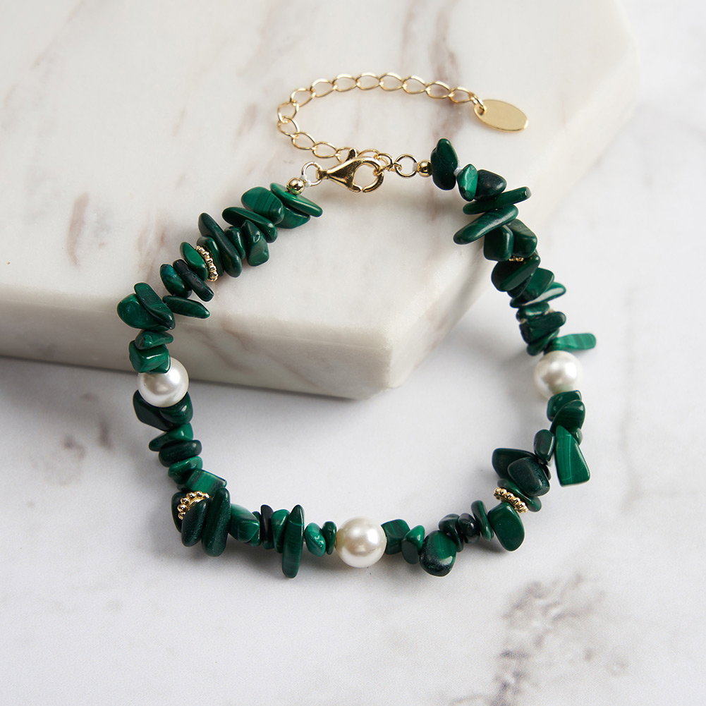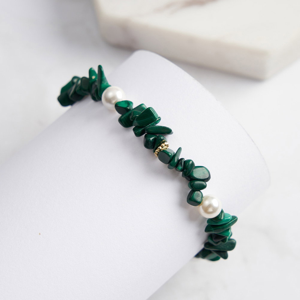 Pietre: Perle prelucrate din cochilii de scoici si Malachit natural