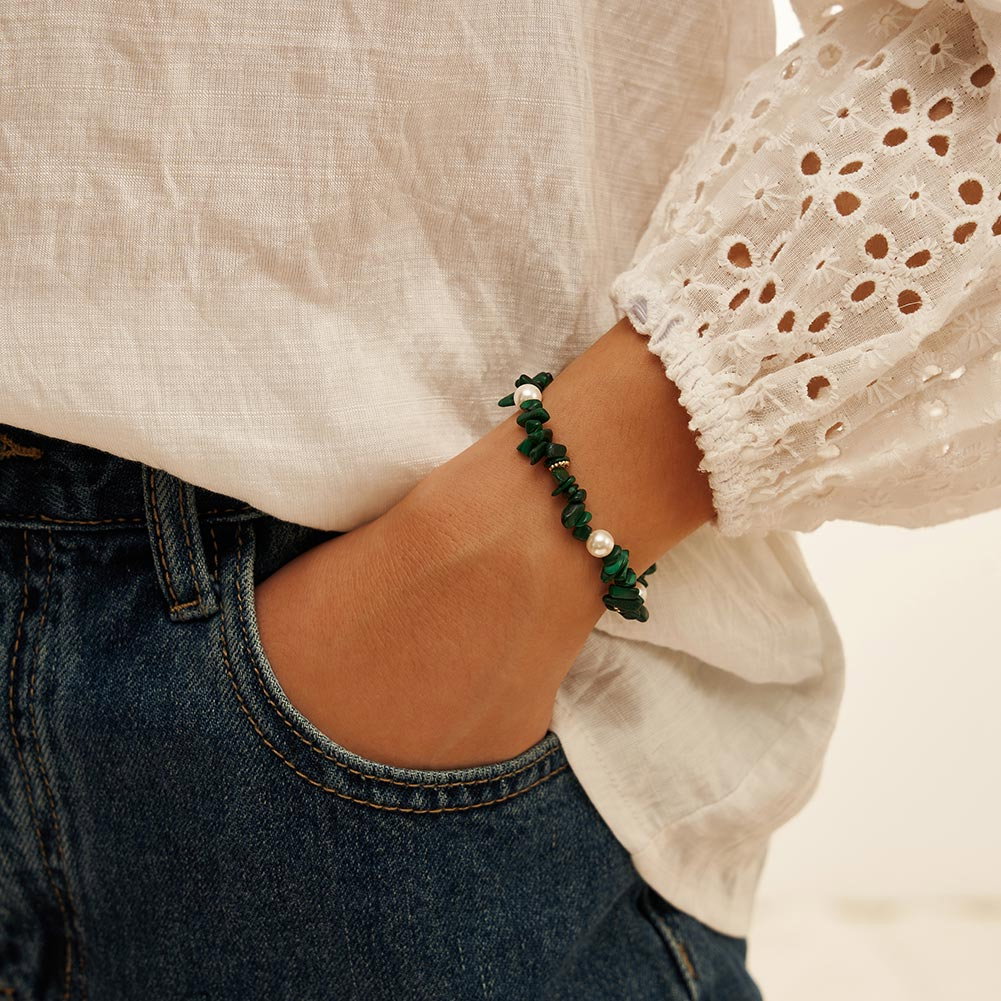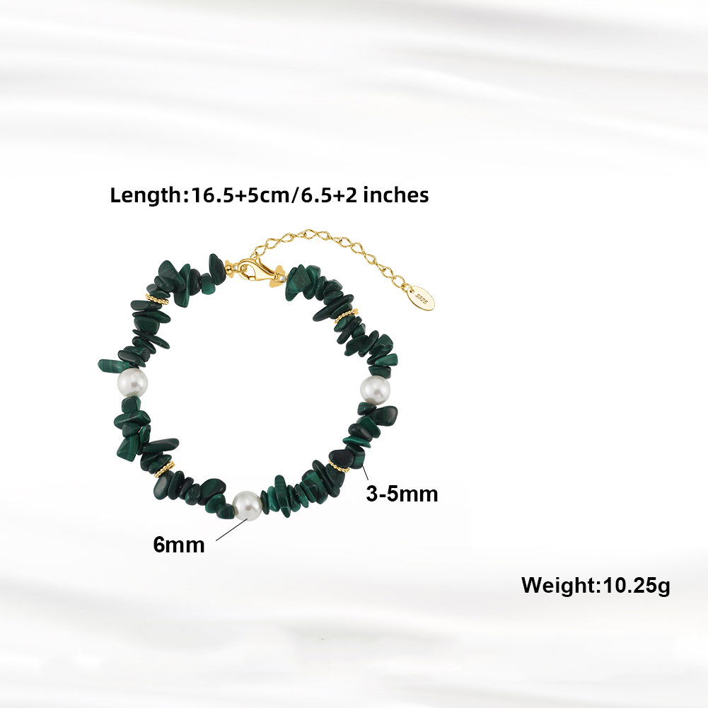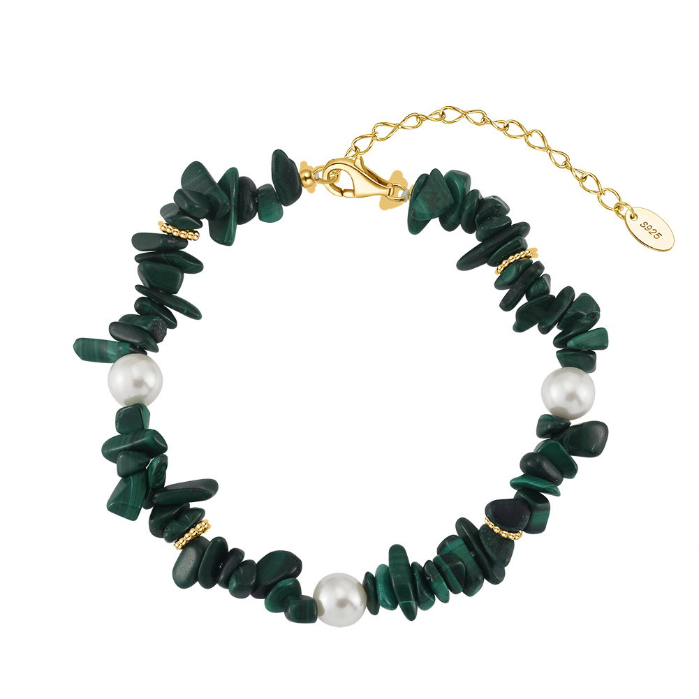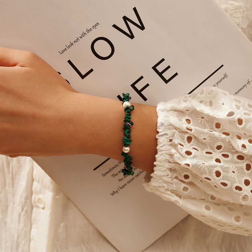 Pietre: Perle prelucrate din cochilii de scoici si Malachit natural