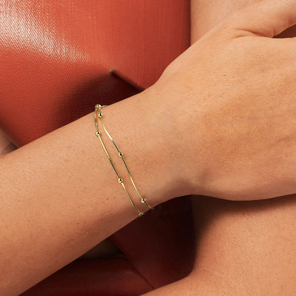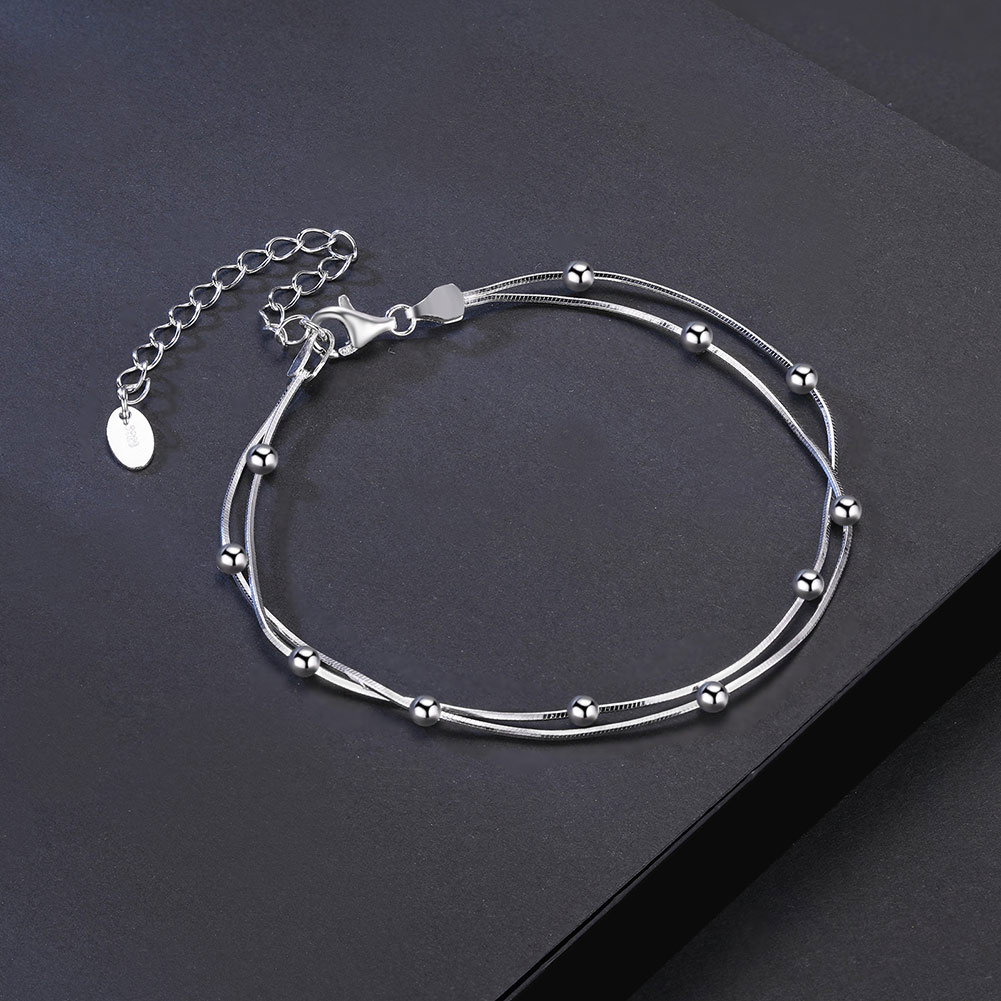 Bratara argint 925 placata cu rodiu cu bilute si doua lanturi