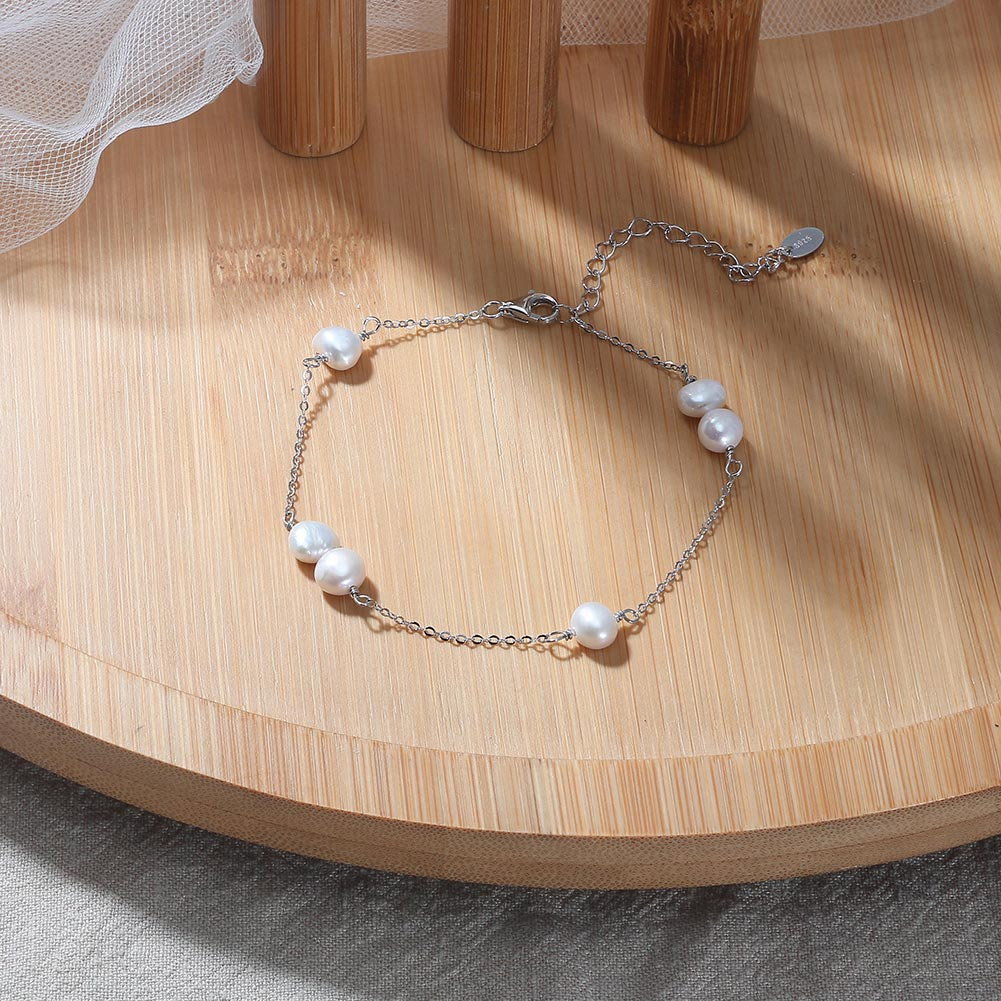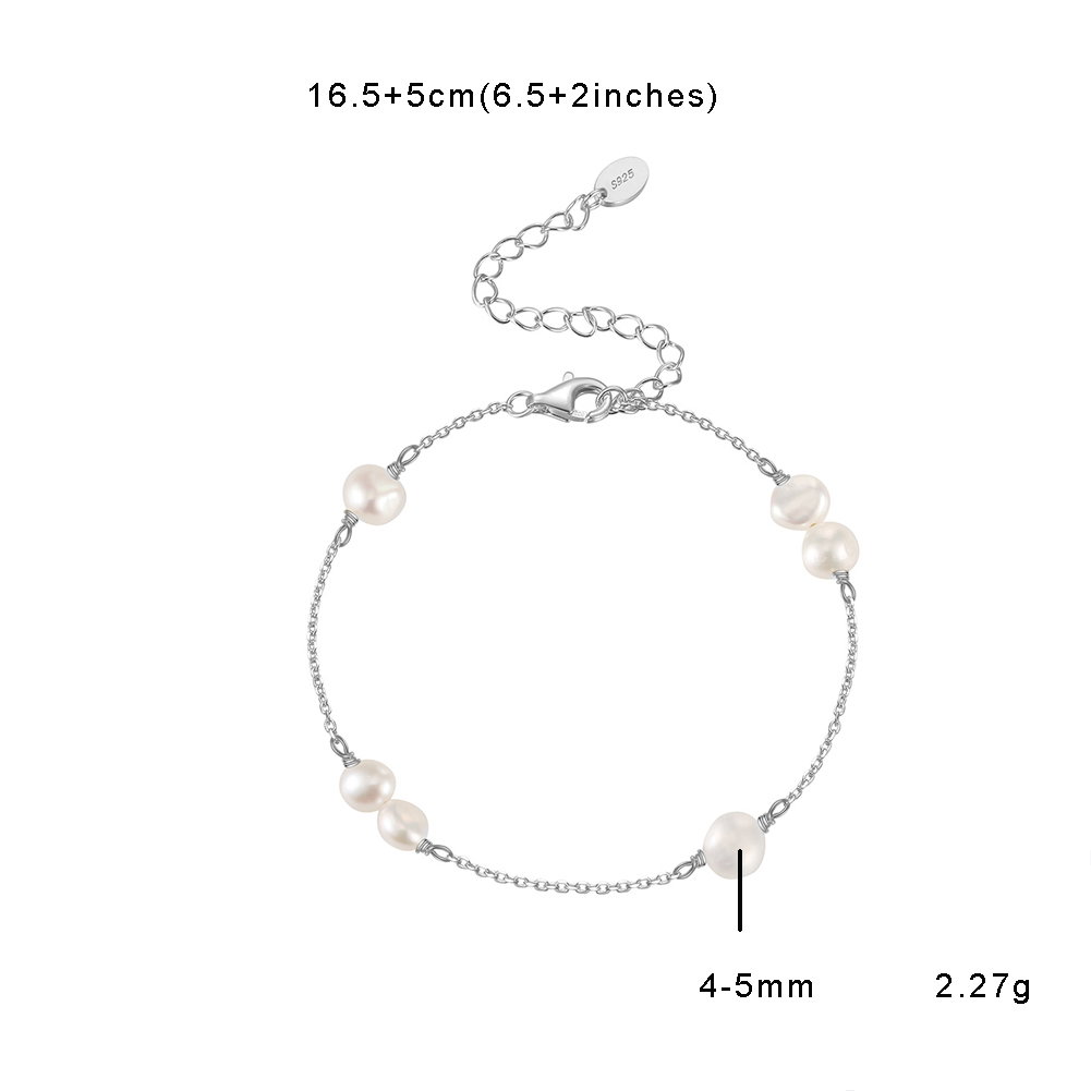 Bratara argint 925 placata cu rodiu cu perle naturale. Dimensiuni: Lungime: 16,5+5 cm, Pietre: 4-5 mm, Grosime lant: 1 mm. Material: Argint 925 placat cu rodiu. Culoare: Argintiu. Pietre: Perle naturale de cultura. Greutate: 2,27 grame.