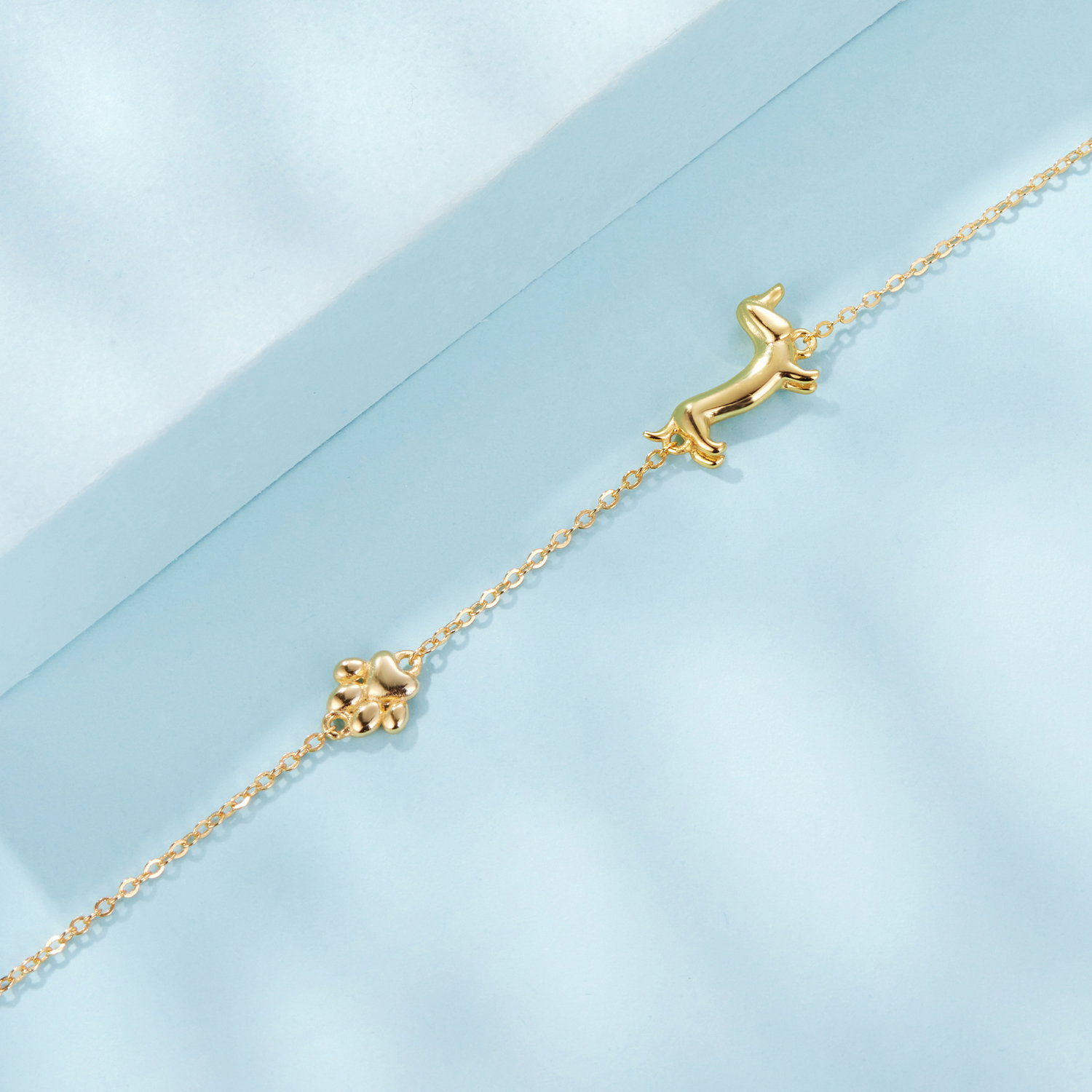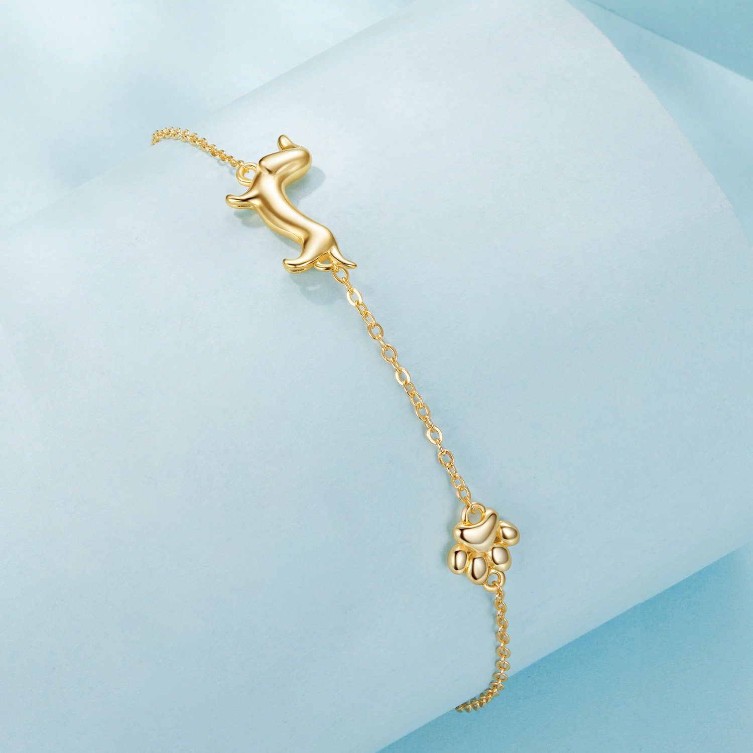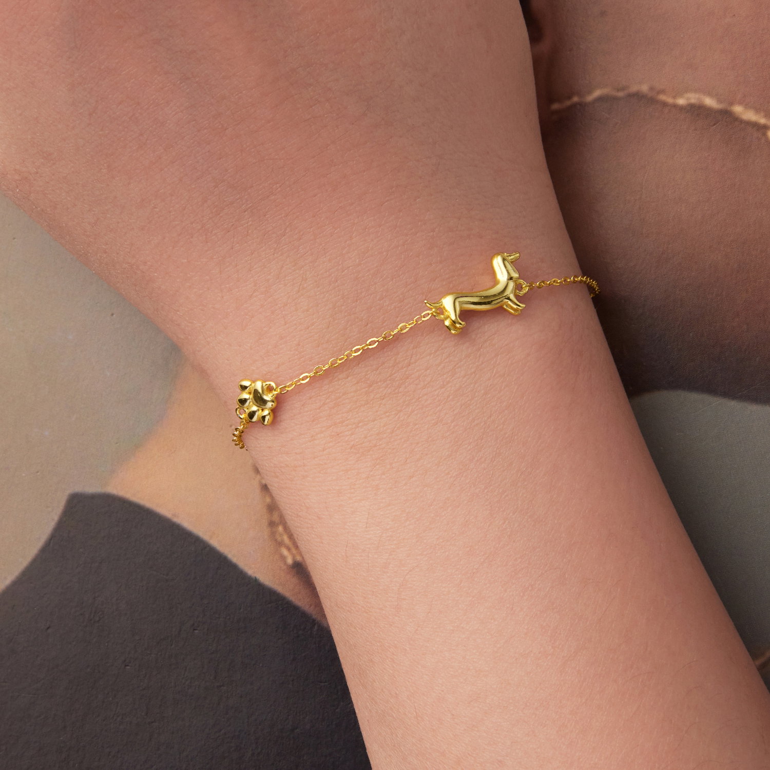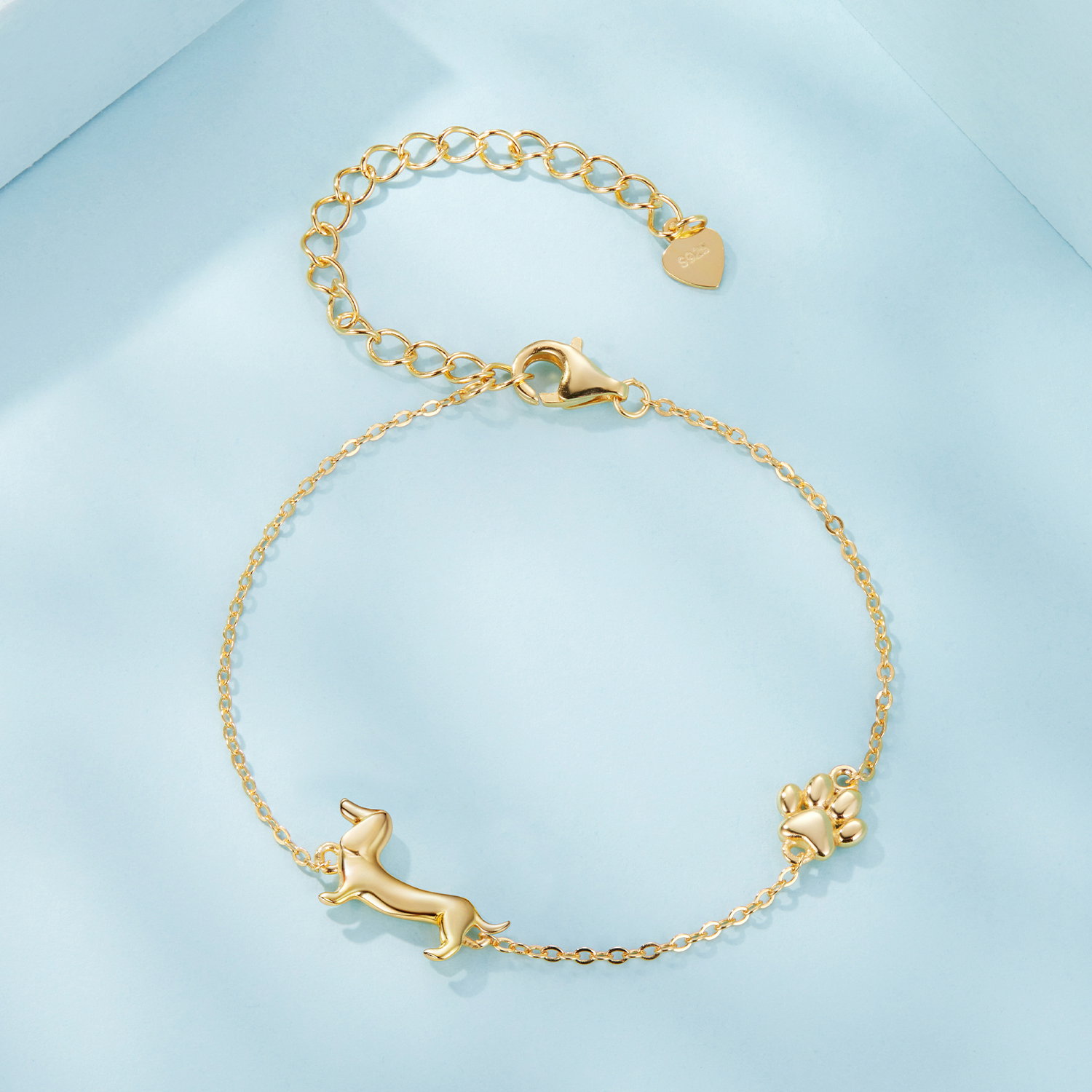 Bratara argint Catel Teckel. Dimensiuni: Lungime: 15 + 6 cm, Pandantiv: 0,9 x 1,5 cm, Greutate: 2,6 grame. Materiale: Argint 925 placat cu aur. Pietre: Fara pietre. Culoare: Auriu.
