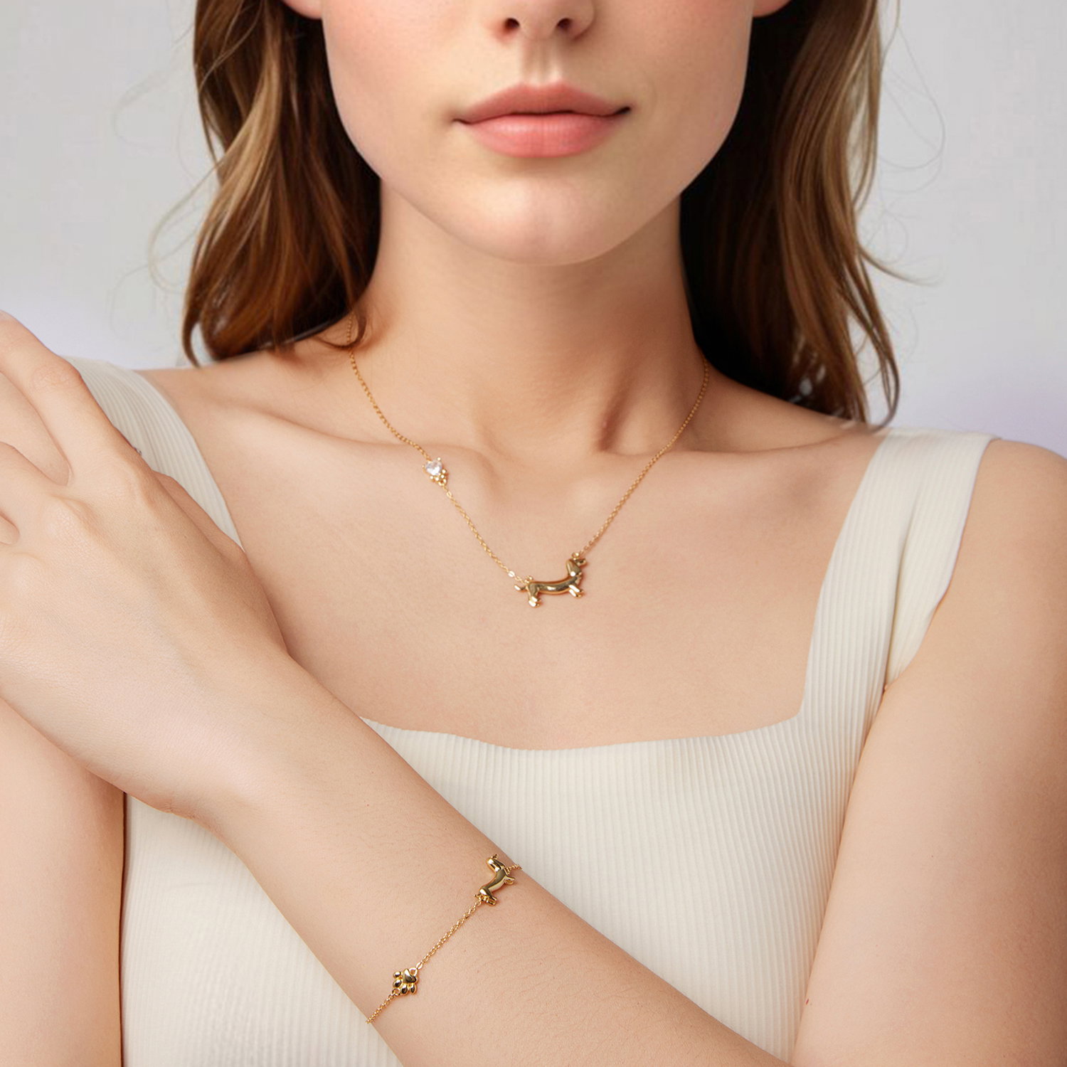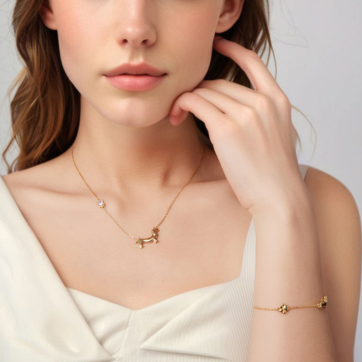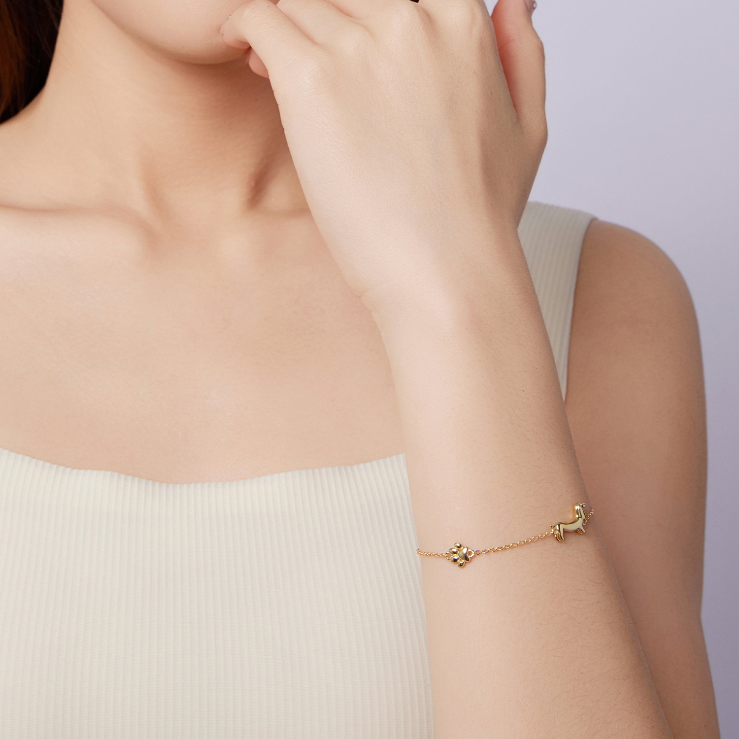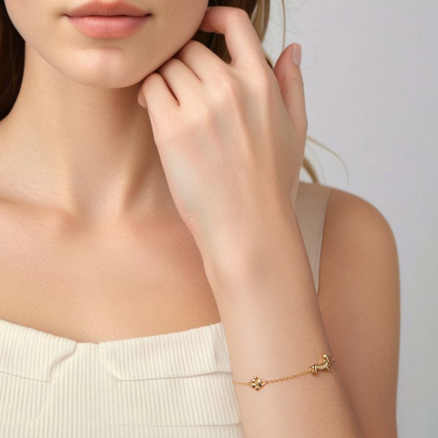 Bratara argint Catel Teckel. Dimensiuni: Lungime: 15 + 6 cm, Pandantiv: 0,9 x 1,5 cm, Greutate: 2,6 grame. Materiale: Argint 925 placat cu aur. Pietre: Fara pietre. Culoare: Auriu.