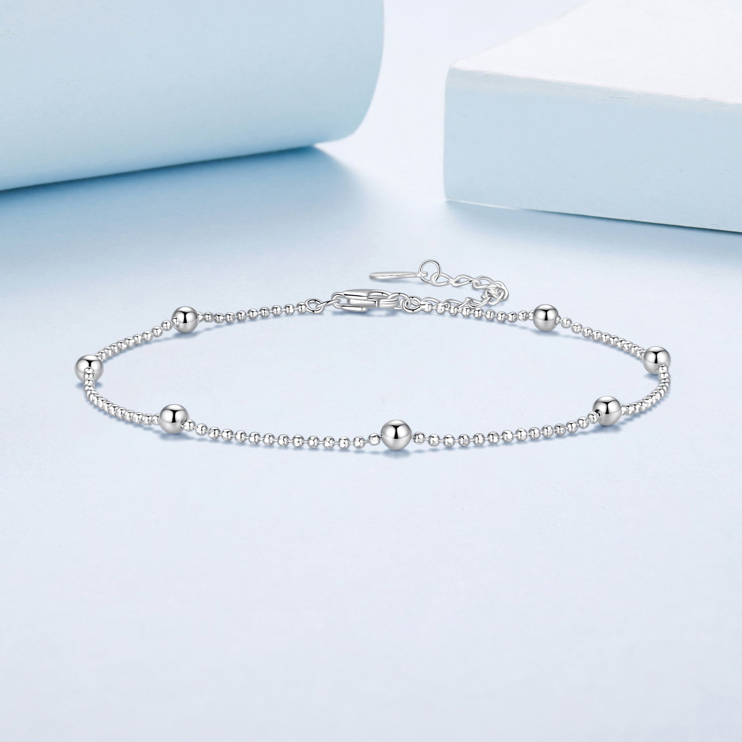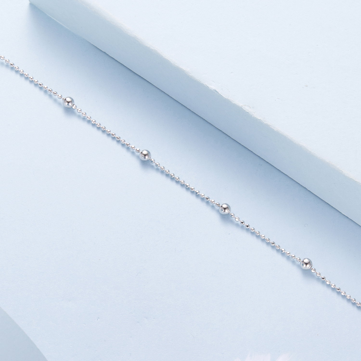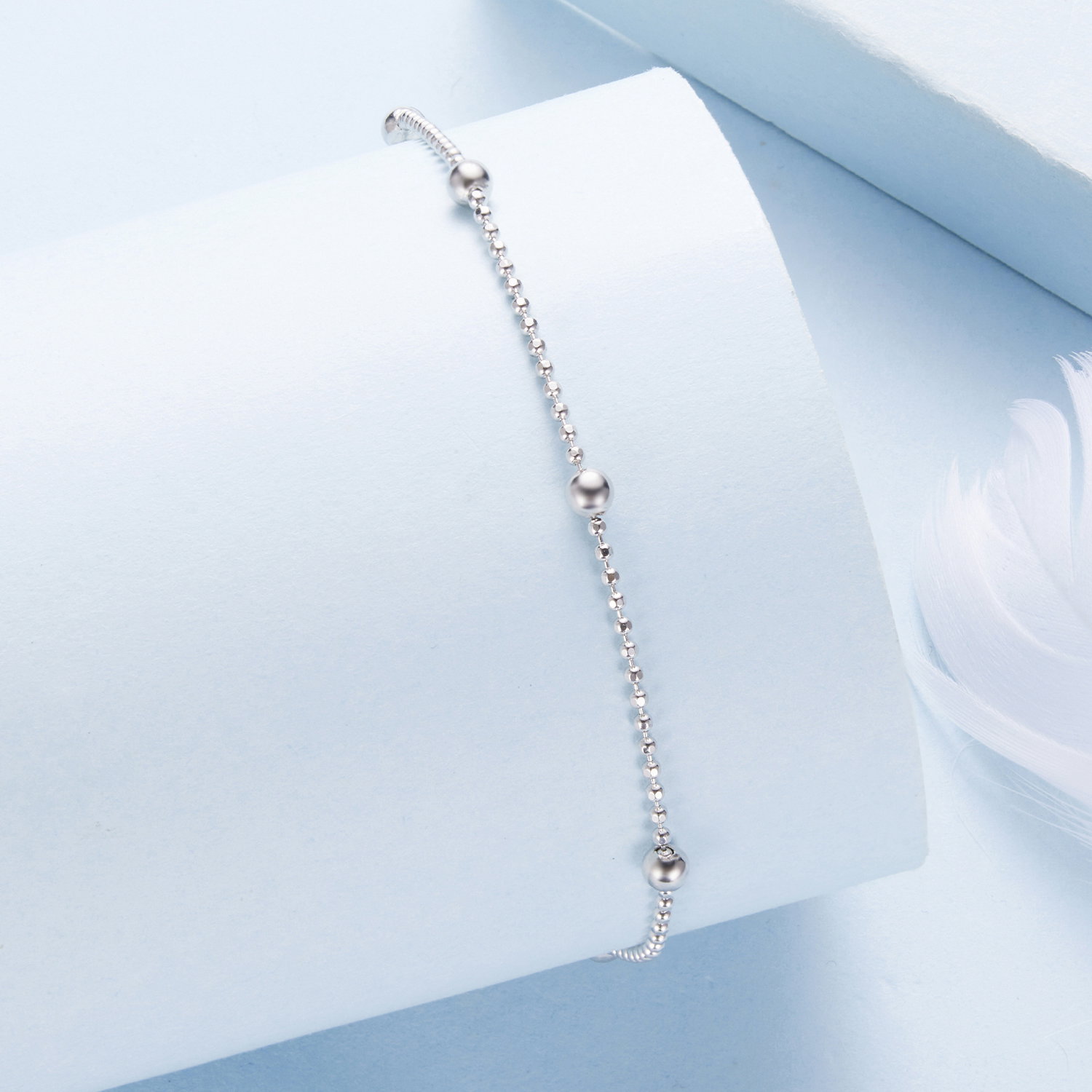 Bilutele mici asezate de-a lungul lantului dau acestei bratari de picior un aspect jucaus si luminos, perfect pentru sezonul cald. Designul este aerisit, feminin si suficient de discret incat sa se potriveasca atat cu sandale fine, cat si cu tinute de vacanta mai relaxate. Realizata din Argint 925 placat cu rodiu, bratara pastreaza un luciu rece si elegant. E genul de accesoriu care adauga imediat un plus de farmec si face glezna sa para mai delicata.