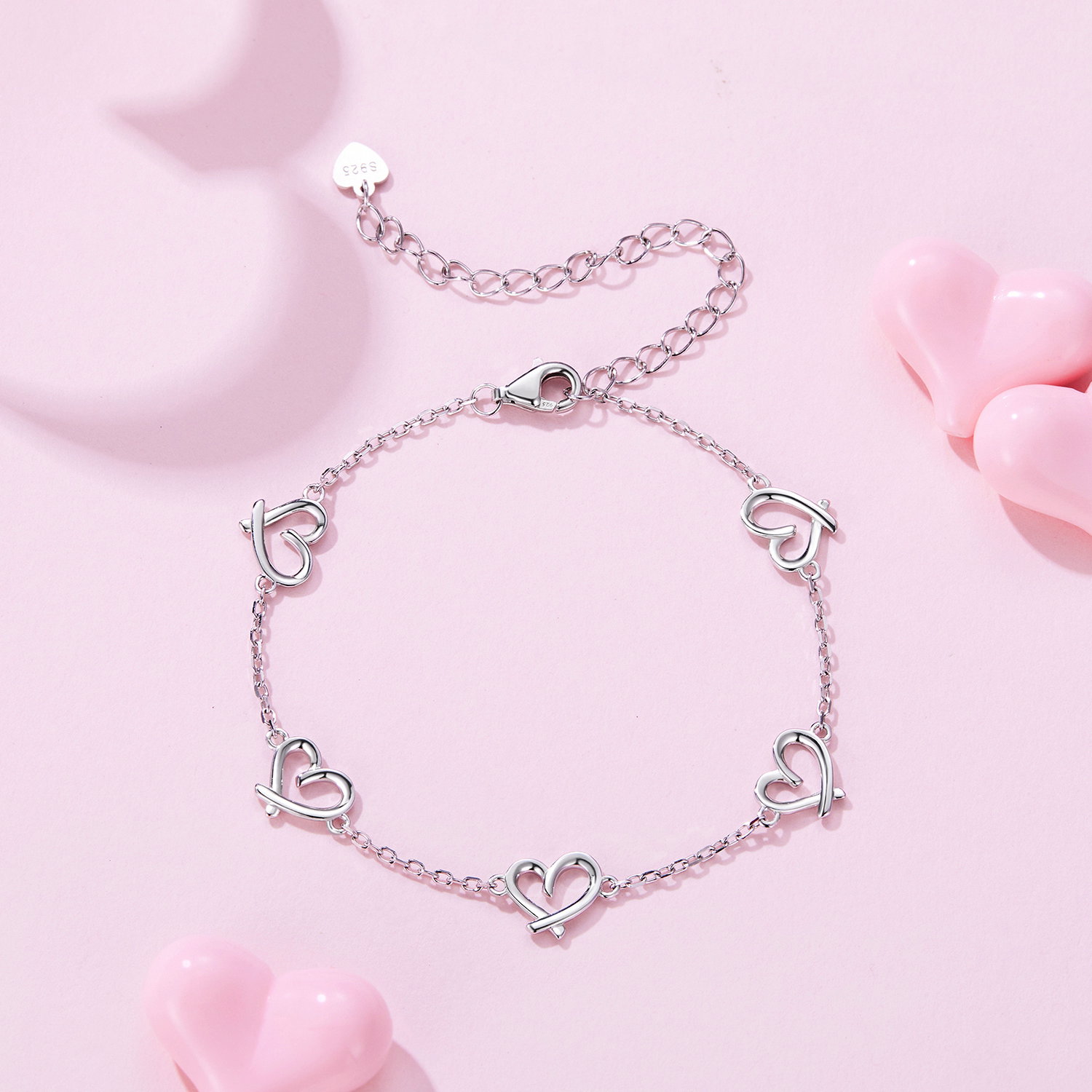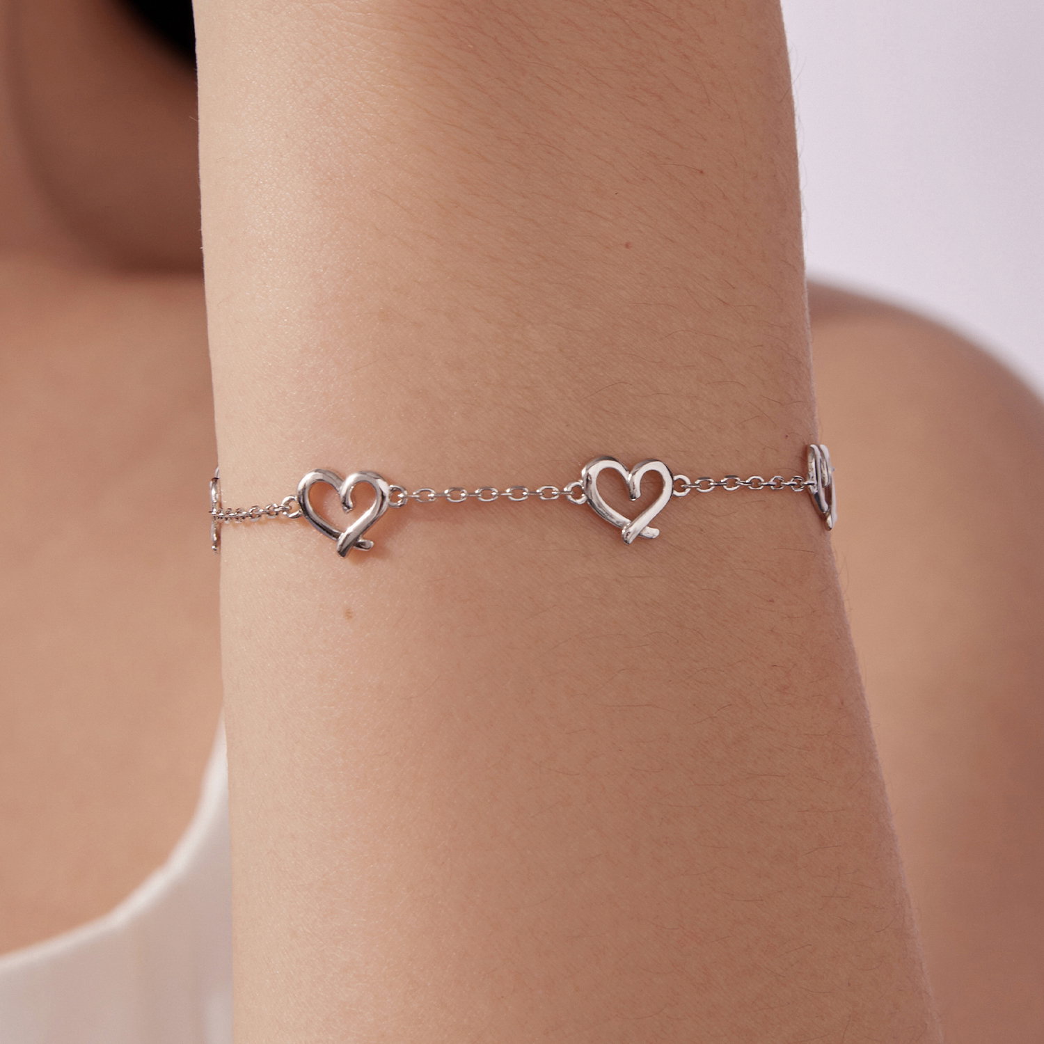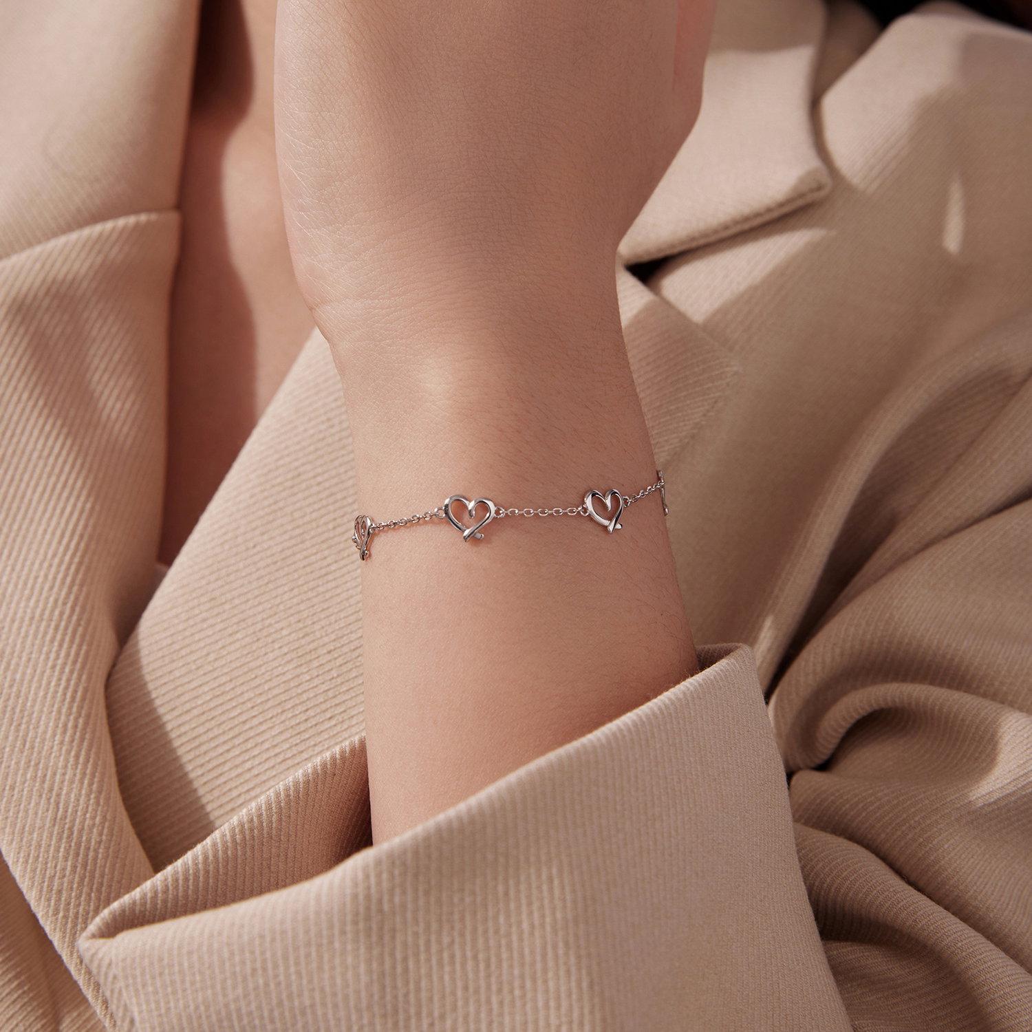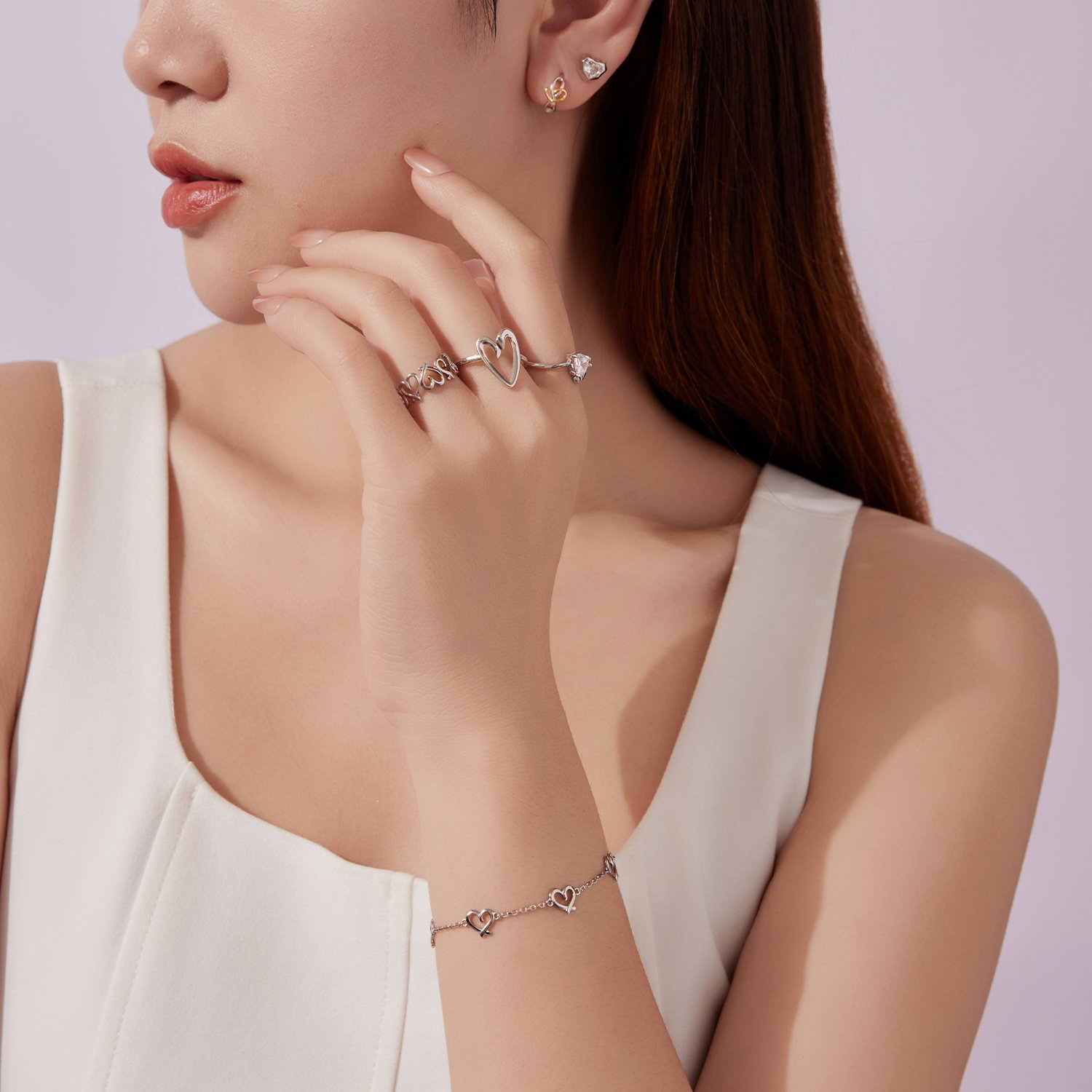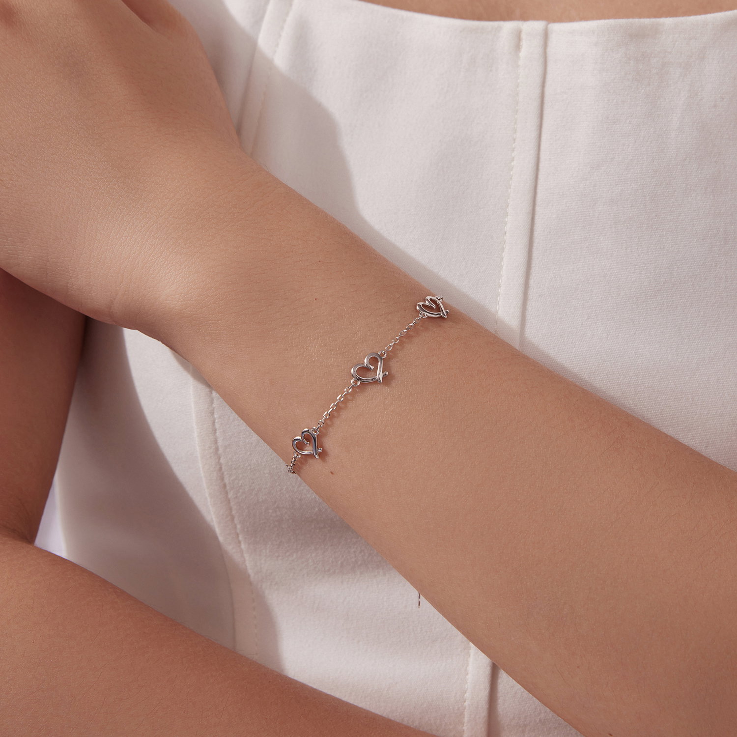 Inimioarele dau acestei bratari un farmec delicat si romantic, usor de remarcat pe incheietura fara sa para prea incarcata. Lantul fin pastreaza modelul lejer si feminin, iar detaliile mici sunt distribuite frumos astfel incat bratara sa ramana echilibrata vizual. Realizata din Argint 925 placat cu rodiu, piesa are un aspect curat si luminos, potrivit pentru purtare frecventa. Se potriveste foarte bine in tinute de zi sau romantice si poate fi purtata singura ori alaturi de alte bratari subtiri.