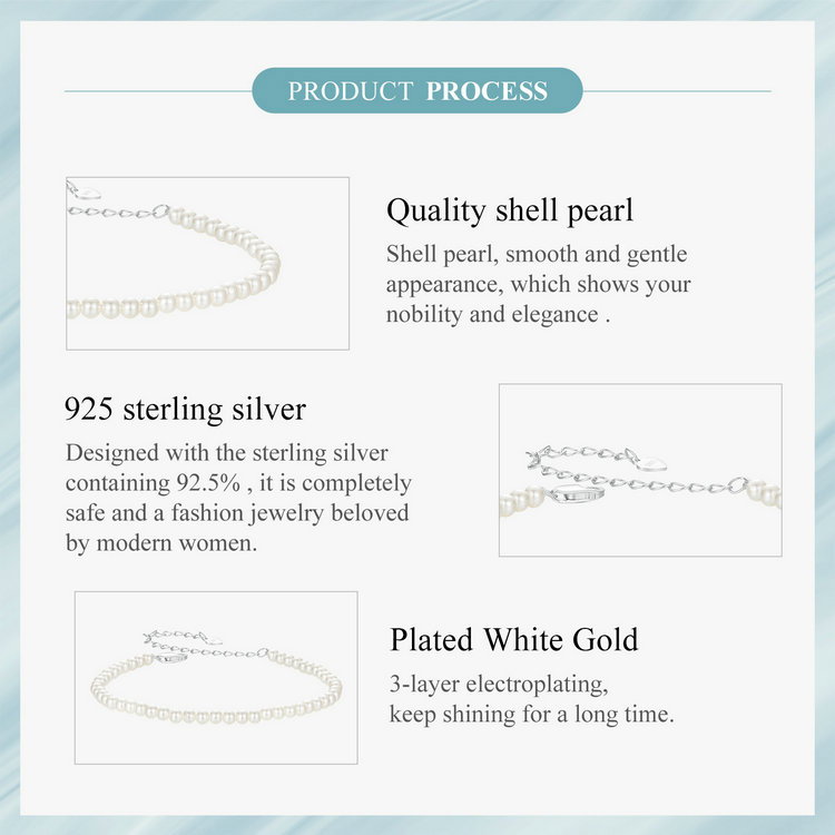 Material: Argint 925 placat cu rodiu, perle prelucrate din scoica (imitatii)