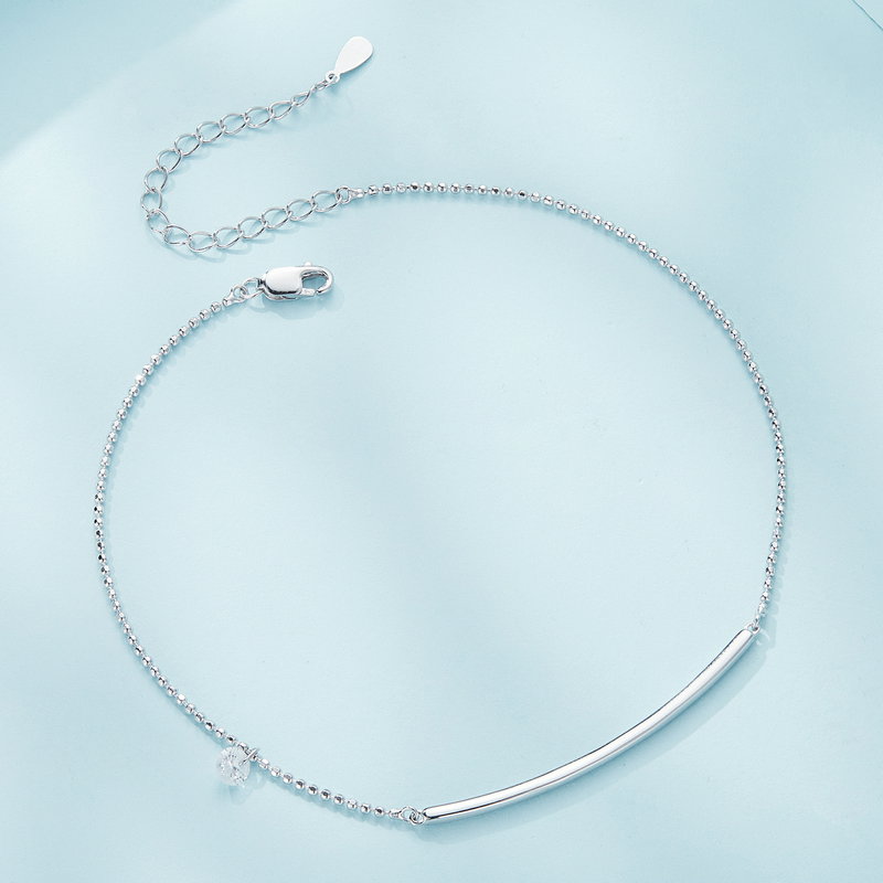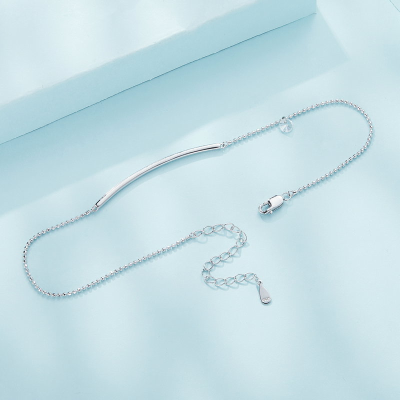 Bratara argint glezna simpla. Dimensiuni: Lungime 220 mm+50 mm, Pandantiv 1,8 x 42 mm. Material: Argint 925 placat cu rodiu, Zirconiu. Culoare: Argintiu. Pietre: Zirconiu. Ambalaj: Cutiuta bijuterii (gratuit).