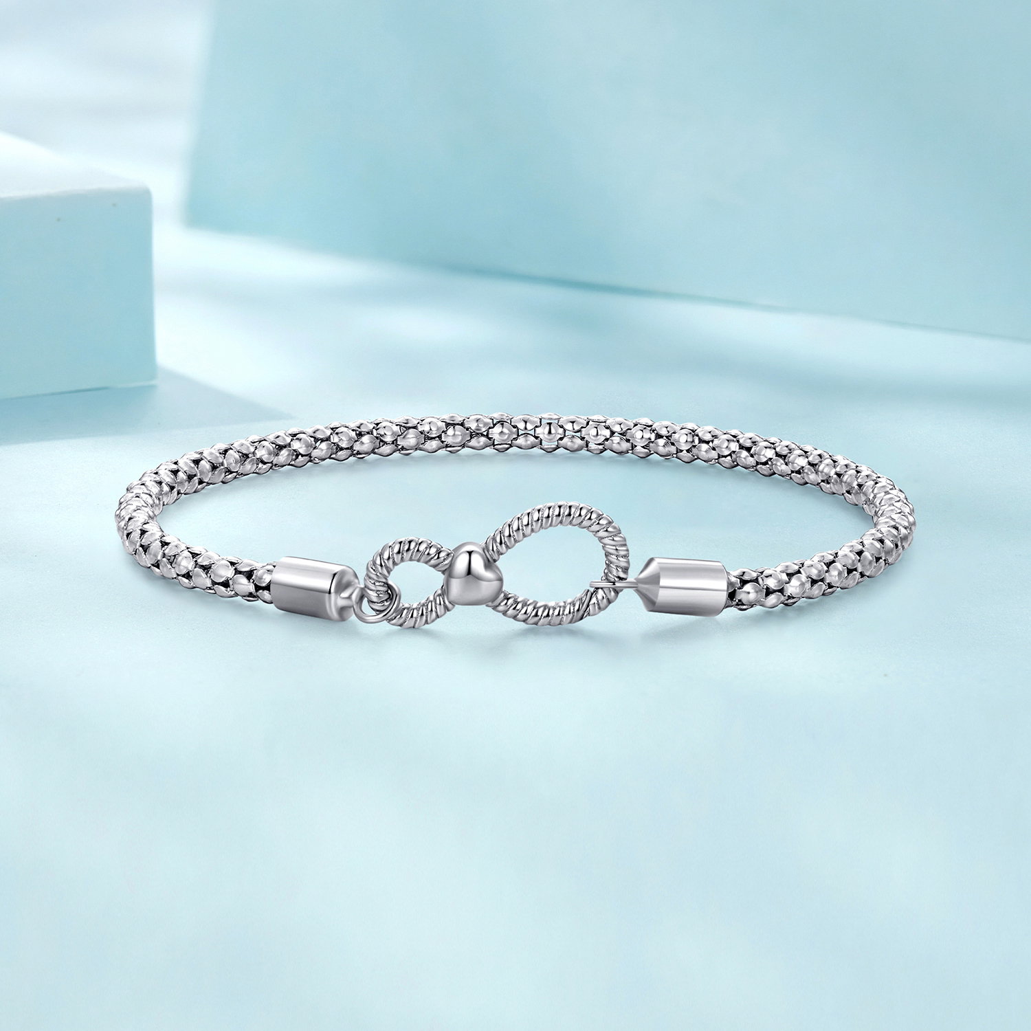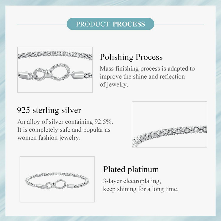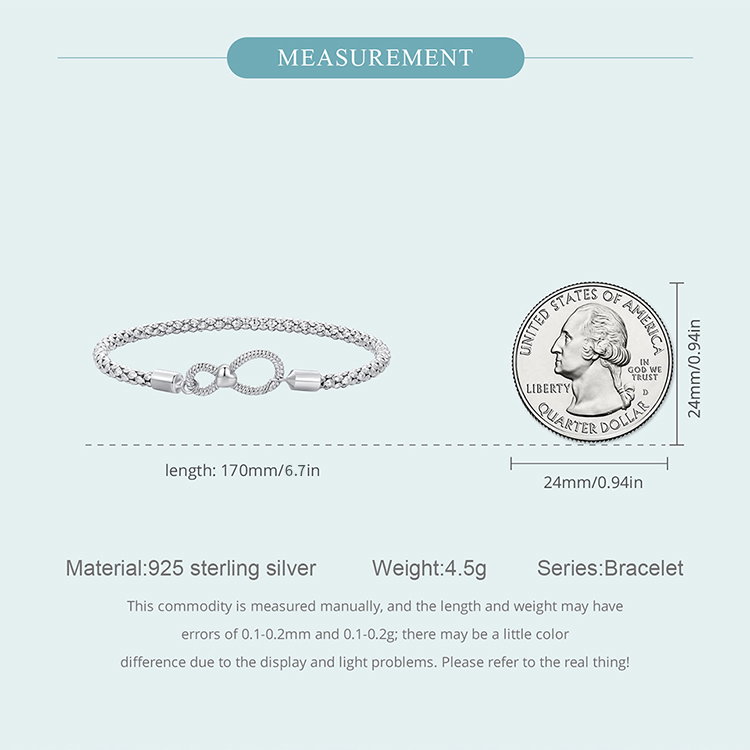 Dimensiuni: Lungime 170 mm, simbol infinit 8 x 18 mm, grosime lant 3 mm, Greutate 4,5 grame