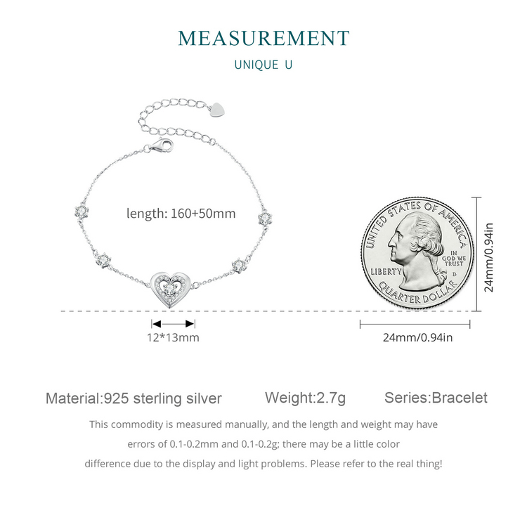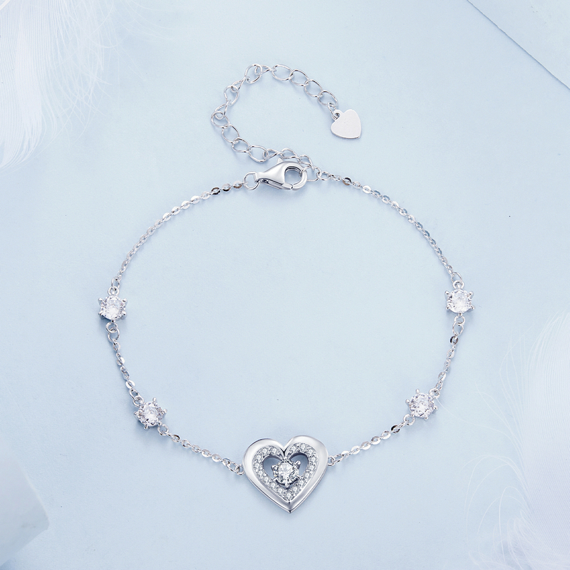 Bratara argint inima stralucitoare. Dimensiuni: Lungime 160+50 mm, Pandantiv 12 x 13 mm. Material: Argint 925 placat cu rodiu, Zirconiu. Culoare: Argintiu. Pietre: Zirconiu. Ambalaj: Cutiuta bijuterii (gratuit).