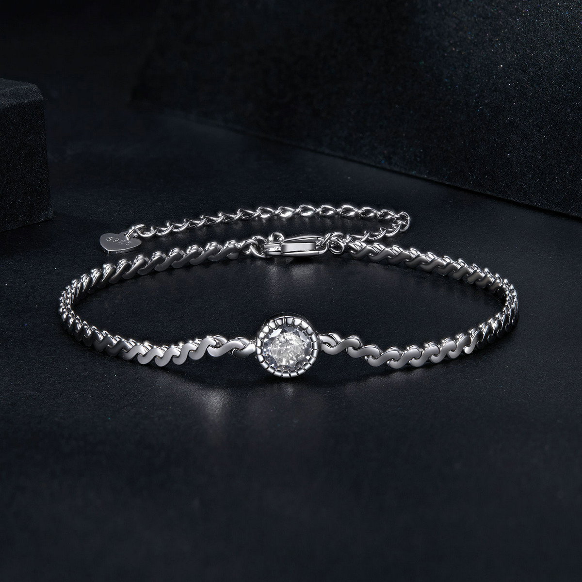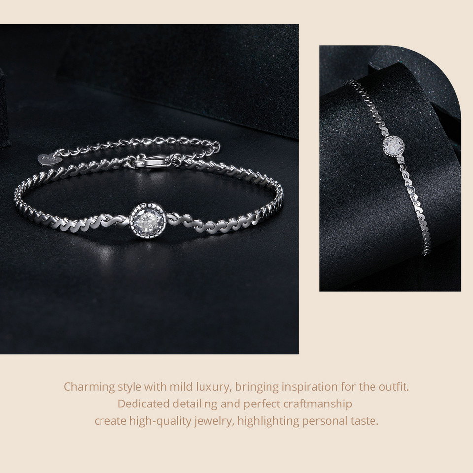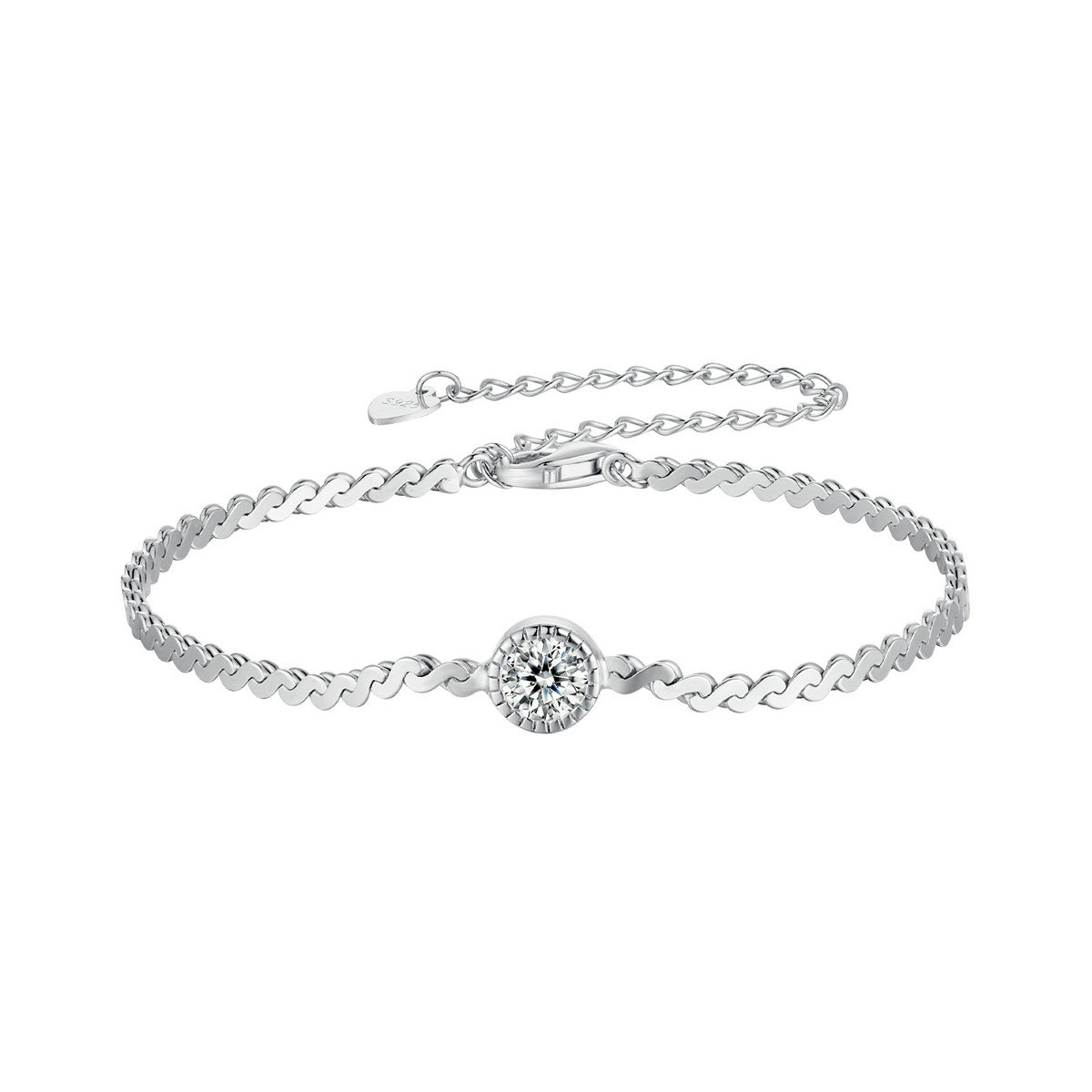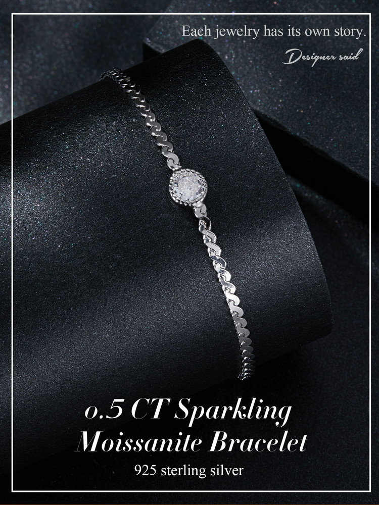 Bratara argint moissanit stralucitor. Dimensiuni: Lungime 150+60 mm, Piatra Moissanit 5,0 mm (0,5 ct). Material: Argint 925 placat cu rodiu, Moissanit. Culoare: Argintiu. Pietre: Moissanit. Ambalaj: Cutiuta bijuterii (gratuit).
