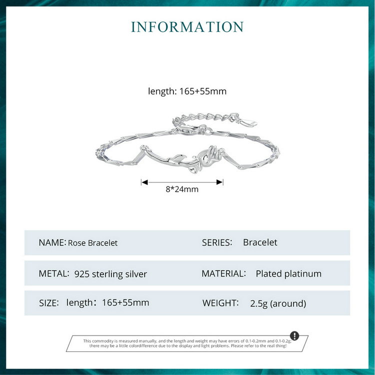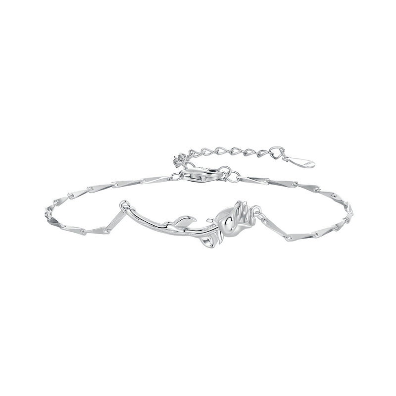 Bratara argint trandafir. Dimensiuni: Lungime 165+55 mm, Trandafir 8 x 24 mm. Material: Argint 925 placat cu rodiu. Culoare: Argintiu. Pietre: Fara pietre. Ambalaj: Cutiuta bijuterii (gratuit).
