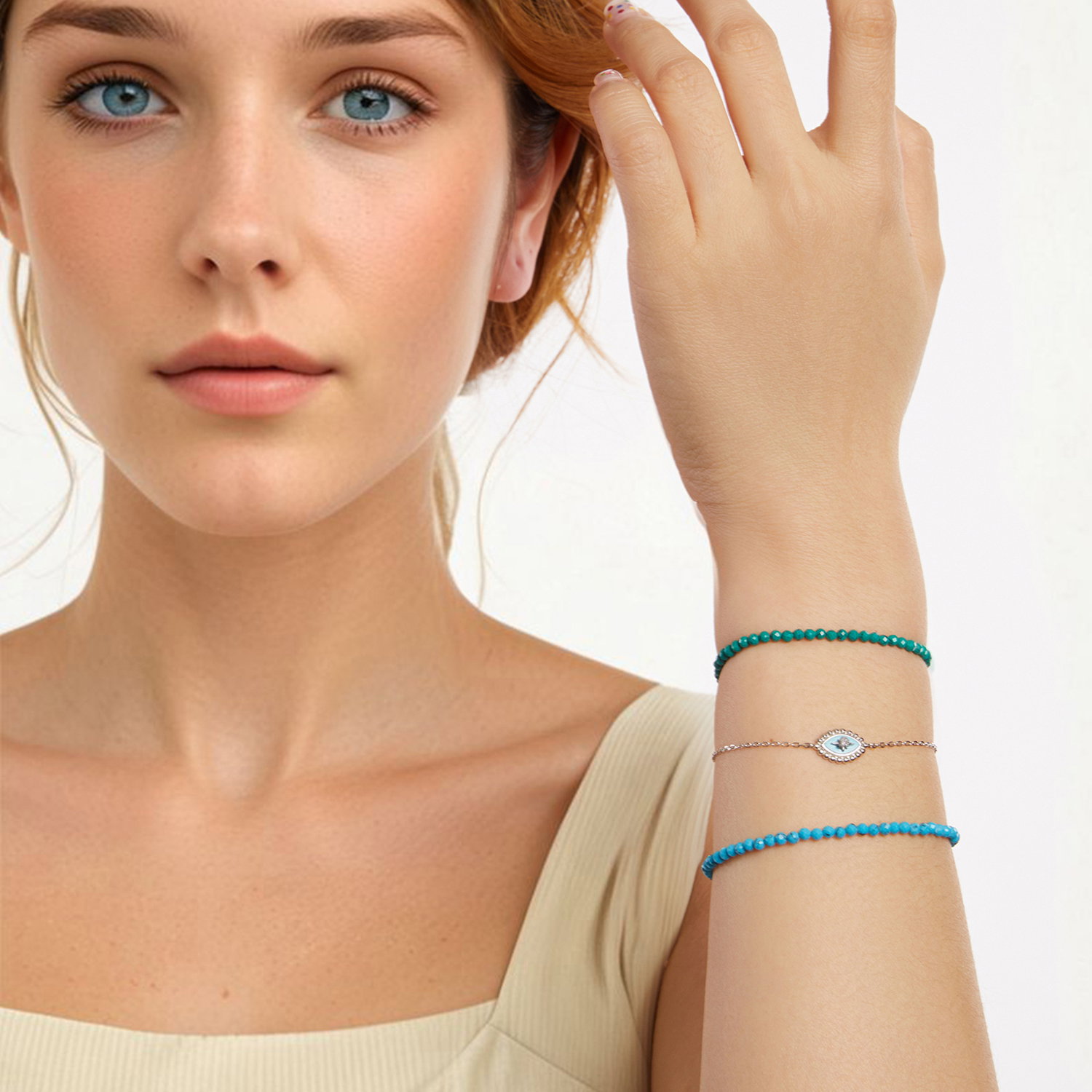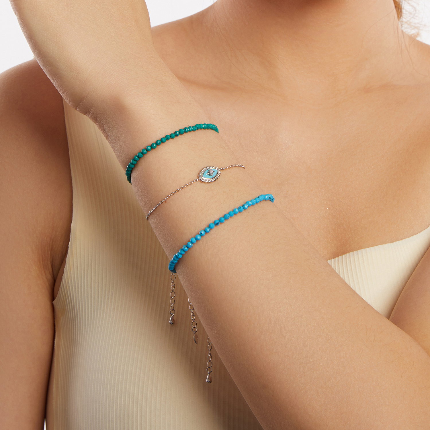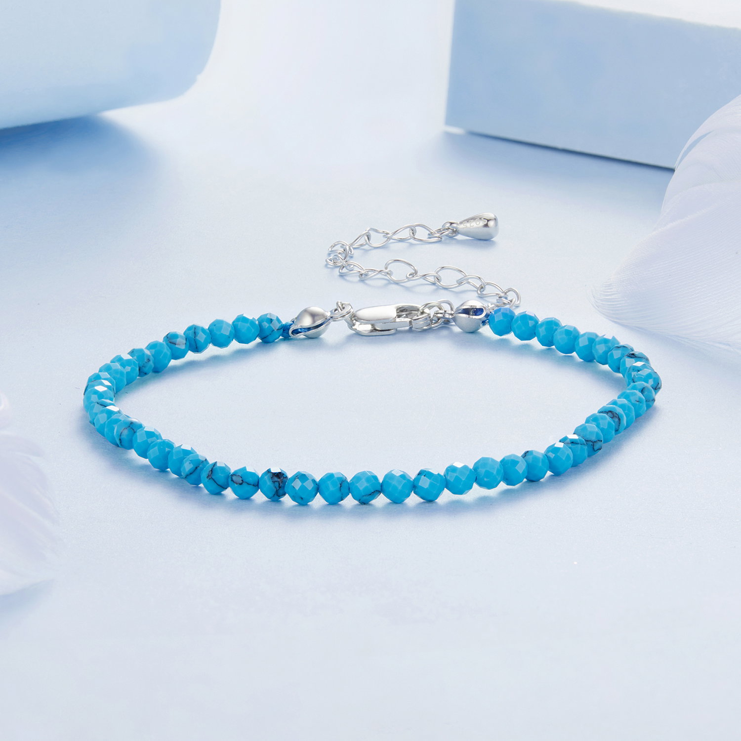 Material: Argint 925 placat cu rodiu, Turcoaz sintetic
