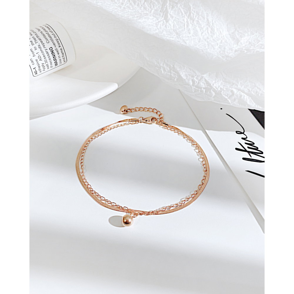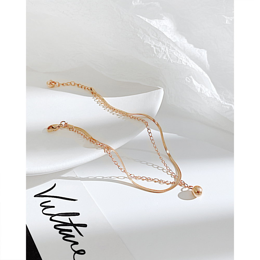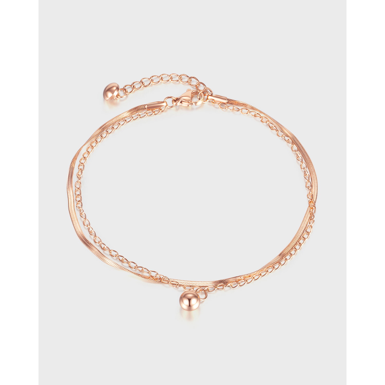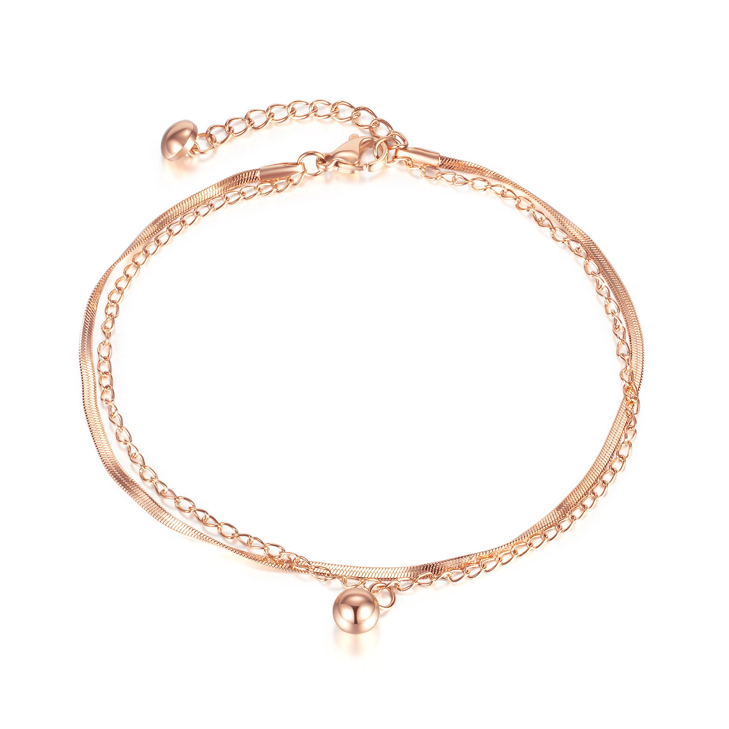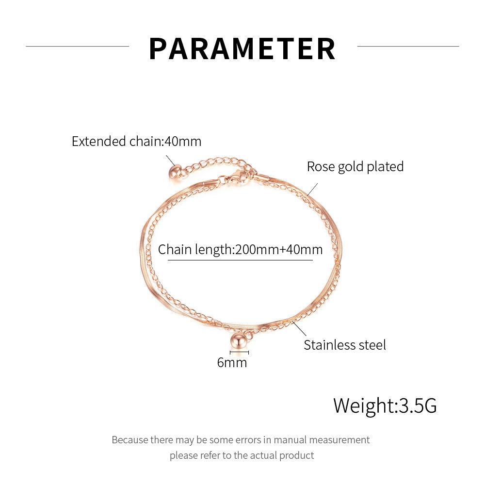 Bratara glezna dubla din inox cu bilute. Dimensiuni: 20 + 4 cm. Culoare: Auriu. Material: Inox. Ambalaj: Saculet bijuterii (gratuit). Greutate: 3,5 grame.