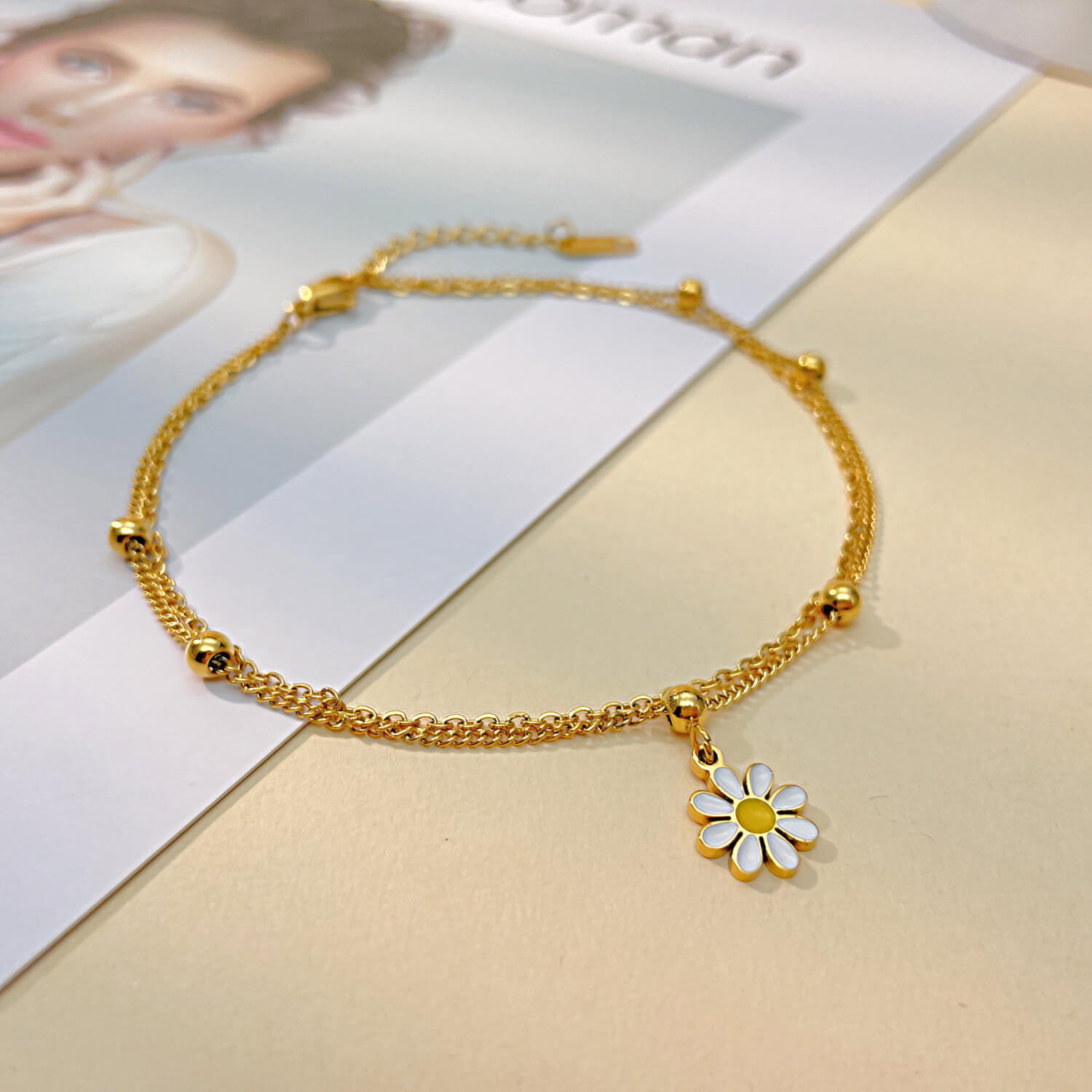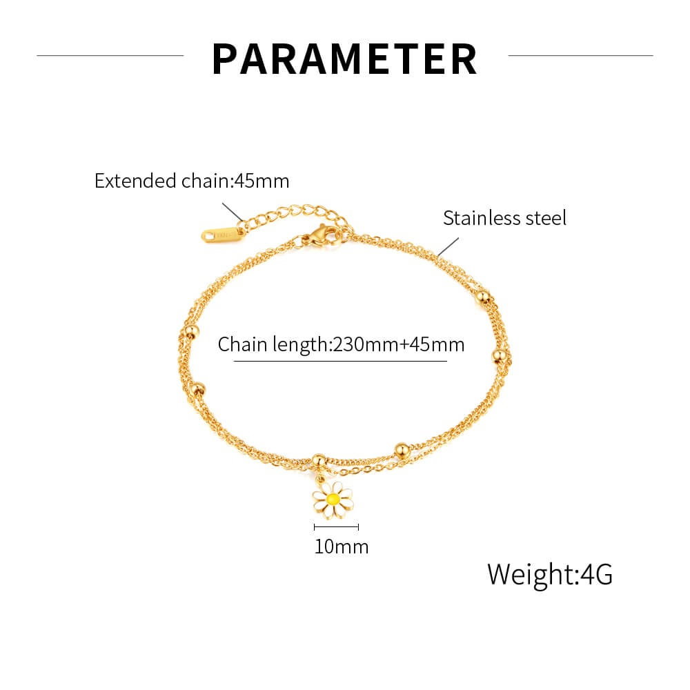Bratara glezna inox auriu cu margareta 23 + 4,5 cm