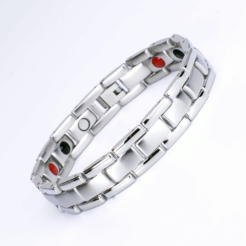 Bratara inox argintie cu magneti, turmalina, germaniu si anioni