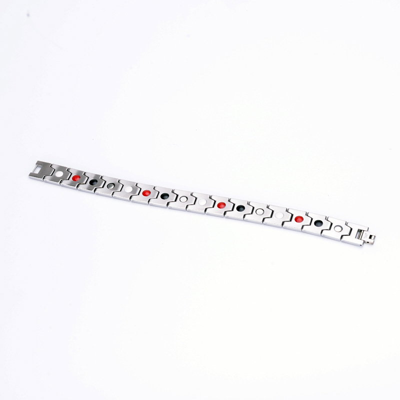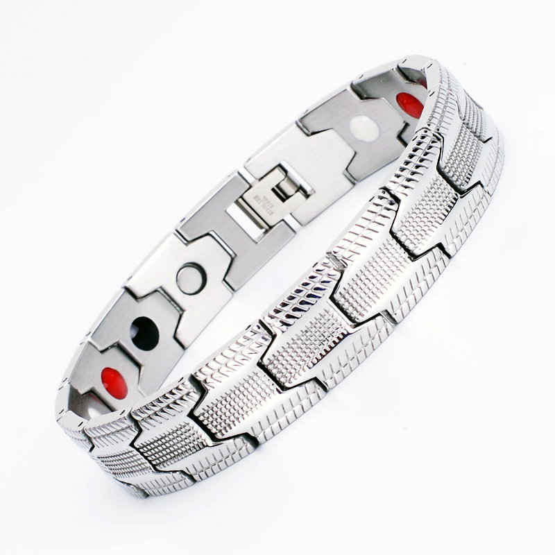 Bratara inox argintie cu magneti, turmalina, germaniu si anioni. Dimensiuni: Lungime 22 cm, Latime 14 mm. Această brățara magnetică elegantă poate fi un cadou perfect pentru tine sau pentru persoana specială din viața ta. Fabricată din oțel inoxidabil, un metal hipoalergenic și rezistent la coroziune, această brățară va fi una durabilă. Brățară utilizează patru dintre cele mai comune pietre terapeutice, care acționează în armonie pentru a ajuta la reducerea durerilor neuropatice, a oboselii și a tensiunii musculare, îmbunătățirea circulației, restabilirea echilibrului și a bunăstării purtătorului și pentru a sprijini creșterea energiei și a echilibrului: • Magnet de neodim: Aceștia sunt cei mai puternici magneți disponibili, cu beneficii terapeutice ca îmbunătățirea circulației sângelui si a oxigerarii și reducerea durerilor articulare, precum cele cauzate de artrită. • Anion (piatra albă): Prezența anionilor, când sunt concentrați, sprijină producția de serotonină, ceea ce poate ajuta la reducerea stresului și creșterea nivelului de energie. • Infraroșu (piatra roșie - turmalina): Emiterea energiei infraroșii ajută la ridicarea ușoară a temperaturii suprafeței corpului, stimulând funcțiile naturale de vindecare (sistemul imunitar) si de detoxifiere și ameliorând durerile cronice. • Germaniu (piatra neagră): Germaniul emite ioni negativi si combate ionii pozitivi emisi de aparatele electrocasnice, fapt ce poate ajuta la cresterea nivelului de serotonina si implicit la instalarea starii de bine, la intarirea sistemului imunitar si la reducerea oboselii. Brățara ajuta la ameliorarea unor afecțiuni precum depresia, durerile articulare, stresul și oboseala, oferind energie și vitalitate. Înainte de a începe terapia cu brățara magnetică, este important să consultați un specialist medical, mai ales dacă aveti dispozitive medicale implantate sau afecțiuni specifice, cum ar fi epilepsia. Bratara nu este recomandata in timpul sarcinii si alaptarii! Această brățară va poate aduce o serie de beneficii pentru bunăstarea dvs. generală, însă consultarea cu un profesionist medical este întotdeauna recomandată înainte de a începe orice formă de terapie alternativă.