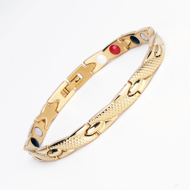 Bratara inox aurie cu magneti, turmalina, germaniu si anioni