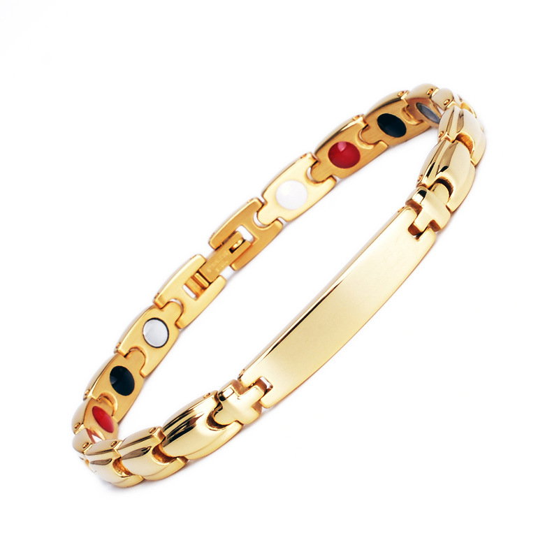 Bratara inox aurie cu magneti, turmalina, germaniu si anioni. Dimensiuni: Lungime 19,5 cm, Latime 5 mm. Această brățara magnetică elegantă poate fi un cadou perfect pentru tine sau pentru persoana specială din viața ta. Fabricată din oțel inoxidabil, un metal hipoalergenic și rezistent la coroziune, această brățară va fi una durabilă. Brățară utilizează patru dintre cele mai comune pietre terapeutice, care acționează în armonie pentru a ajuta la reducerea durerilor neuropatice, a oboselii și a tensiunii musculare, îmbunătățirea circulației, restabilirea echilibrului și a bunăstării purtătorului și pentru a sprijini creșterea energiei și a echilibrului: • Magnet de neodim: Aceștia sunt cei mai puternici magneți disponibili, cu beneficii terapeutice ca îmbunătățirea circulației sângelui si a oxigerarii și reducerea durerilor articulare, precum cele cauzate de artrită. • Anion (piatra albă): Prezența anionilor, când sunt concentrați, sprijină producția de serotonină, ceea ce poate ajuta la reducerea stresului și creșterea nivelului de energie. • Infraroșu (piatra roșie - turmalina): Emiterea energiei infraroșii ajută la ridicarea ușoară a temperaturii suprafeței corpului, stimulând funcțiile naturale de vindecare (sistemul imunitar) si de detoxifiere și ameliorând durerile cronice. • Germaniu (piatra neagră): Germaniul emite ioni negativi si combate ionii pozitivi emisi de aparatele electrocasnice, fapt ce poate ajuta la cresterea nivelului de serotonina si implicit la instalarea starii de bine, la intarirea sistemului imunitar si la reducerea oboselii. Brățara ajuta la ameliorarea unor afecțiuni precum depresia, durerile articulare, stresul și oboseala, oferind energie și vitalitate. Înainte de a începe terapia cu brățara magnetică, este important să consultați un specialist medical, mai ales dacă aveti dispozitive medicale implantate sau afecțiuni specifice, cum ar fi epilepsia. Bratara nu este recomandata in timpul sarcinii si alaptarii! Această brățară va poate aduce o serie de beneficii pentru bunăstarea dvs. generală, însă consultarea cu un profesionist medical este întotdeauna recomandată înainte de a începe orice formă de terapie alternativă.