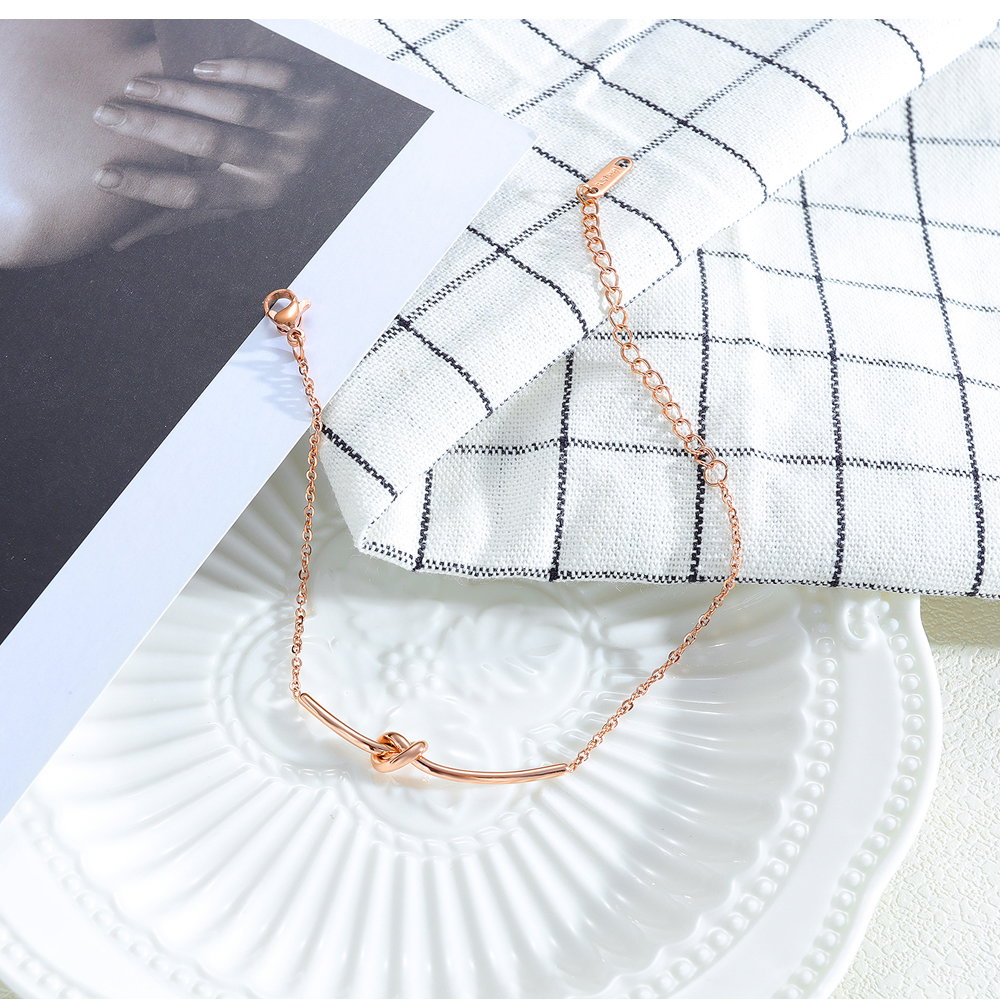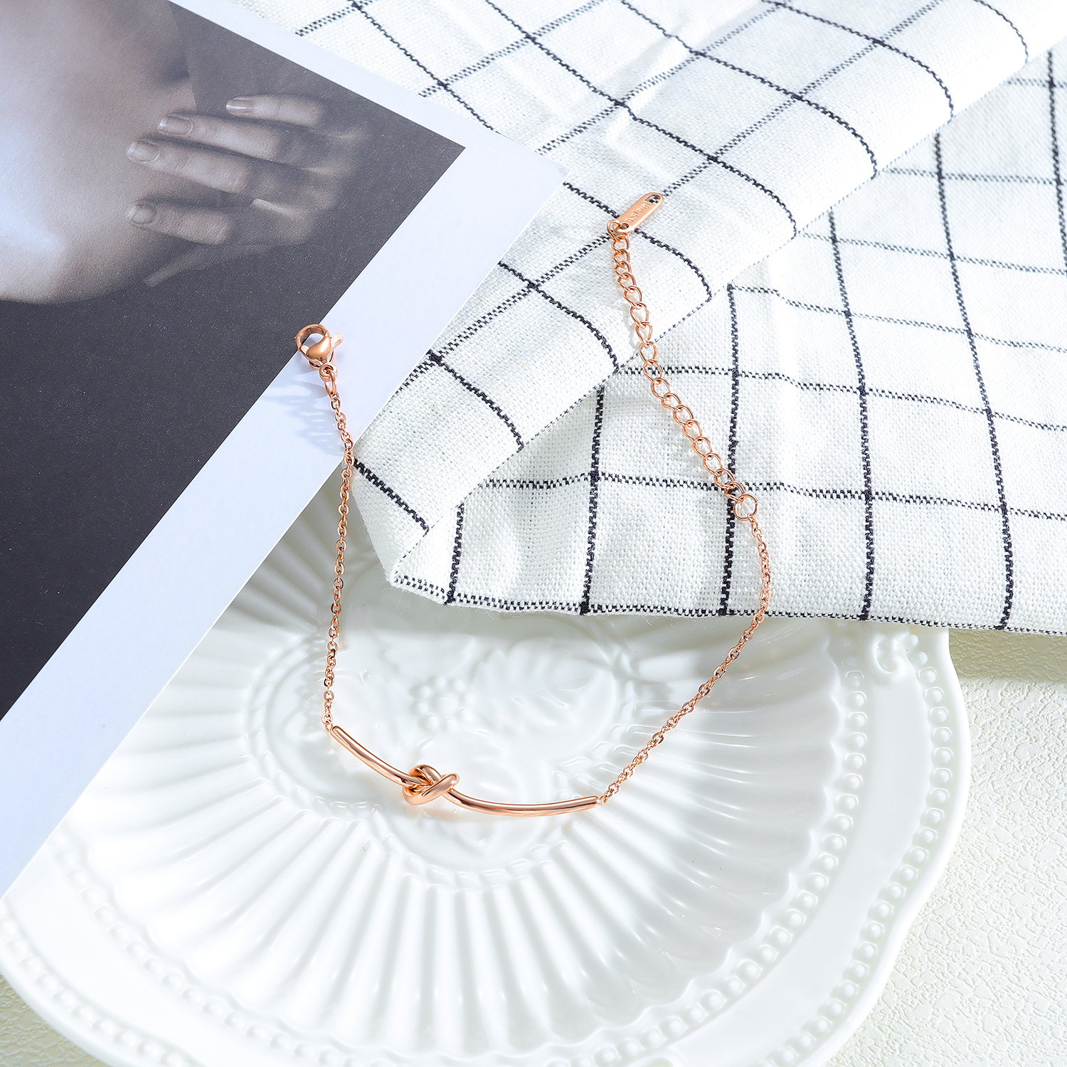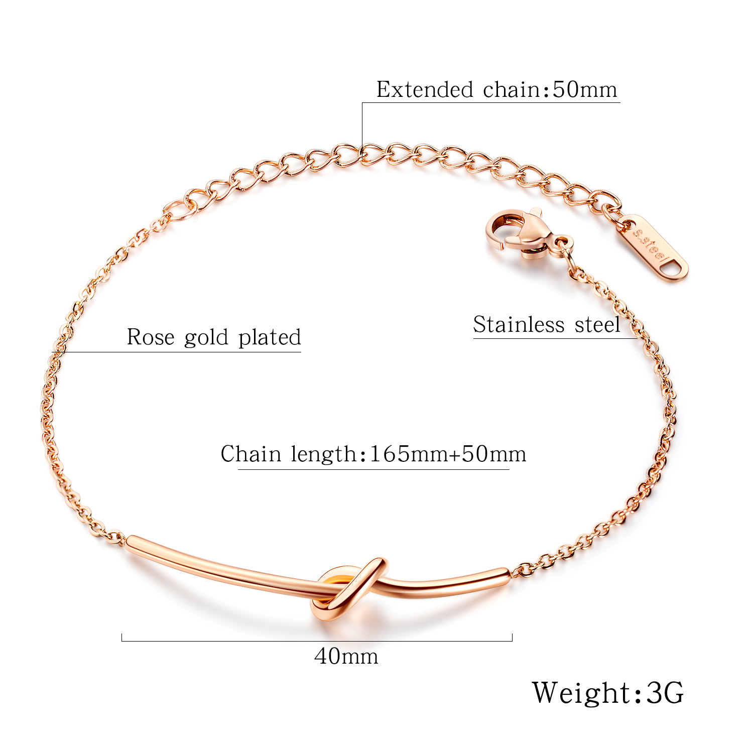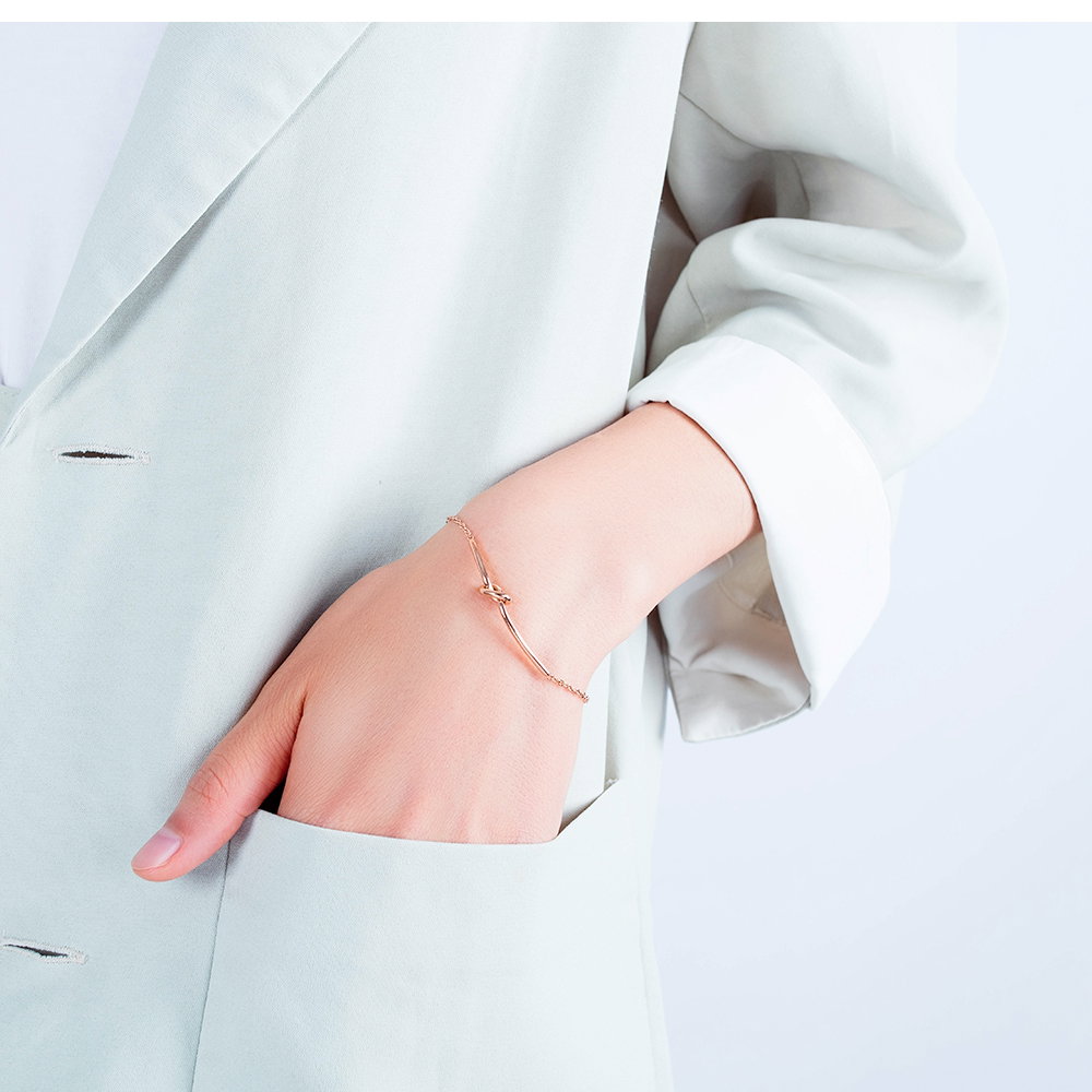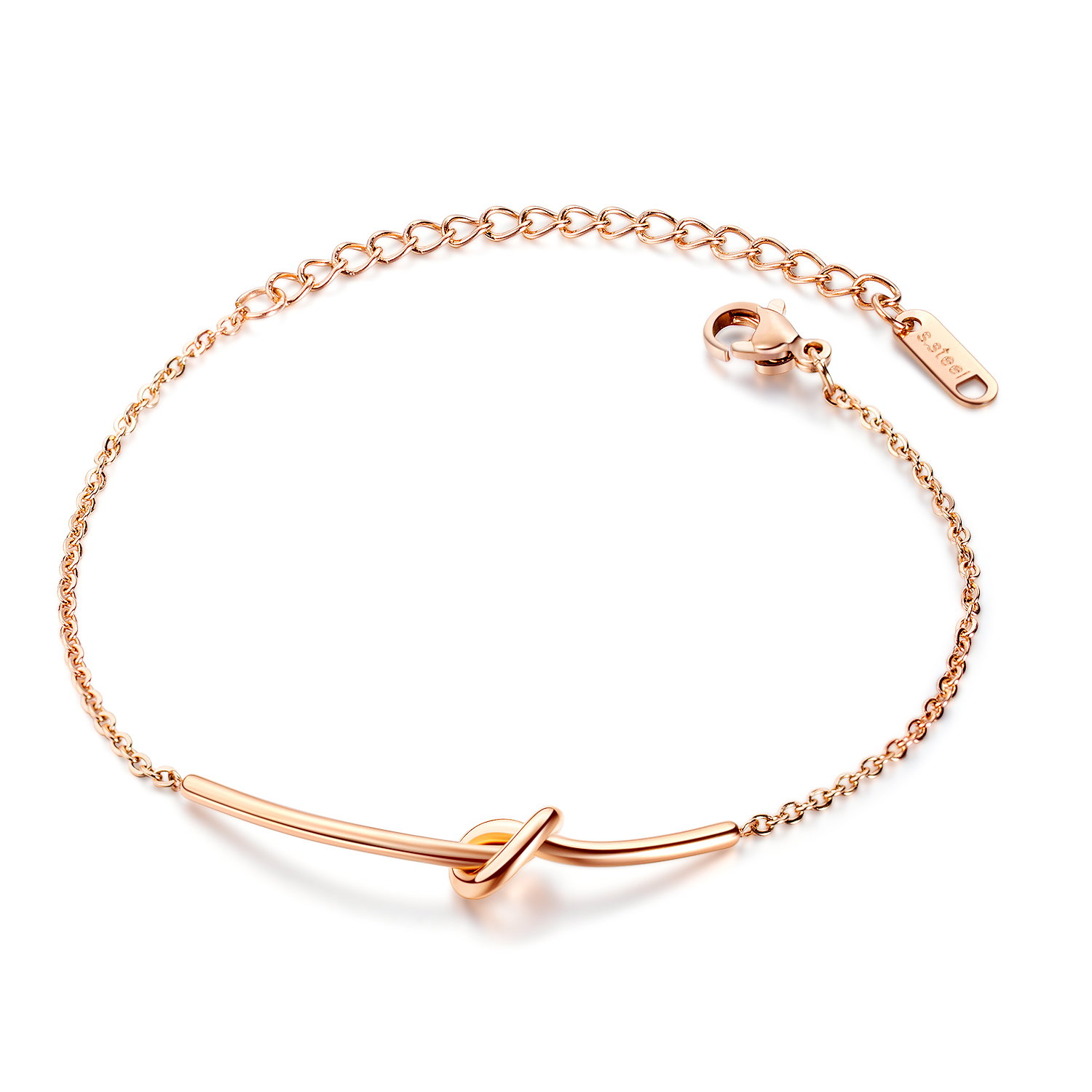Bratara fina din inox aurie, placata cu aur tehnologic roz, decorata cu un detaliu elegant in forma de nod – simbol al iubirii si al conexiunilor autentice. Designul minimalist si rafinat o face usor de asortat la orice tinuta, de la casual la eleganta. Inchiderea reglabila ofera confort si adaptabilitate. Un cadou delicat si plin de semnificatie pentru persoanele care apreciaza bijuteriile subtile, dar expresive.