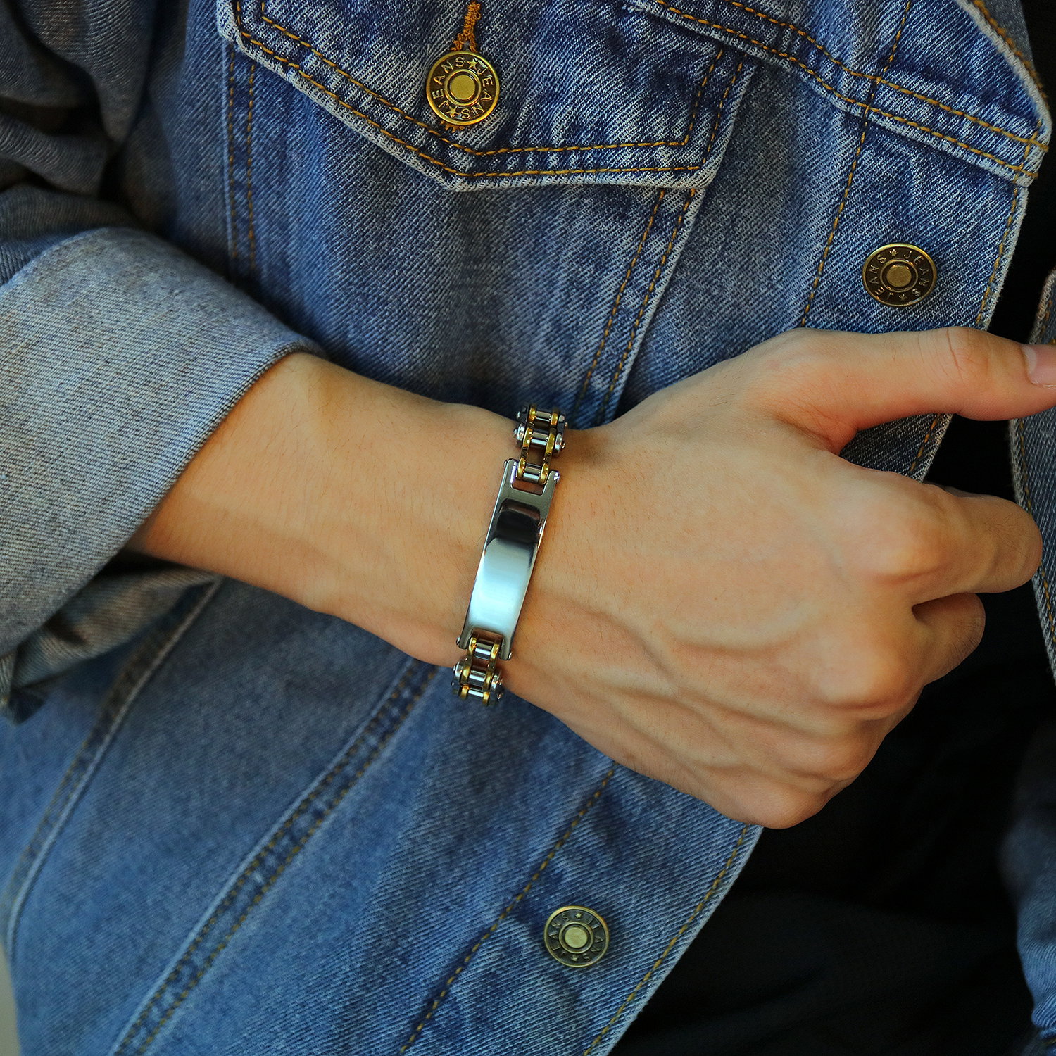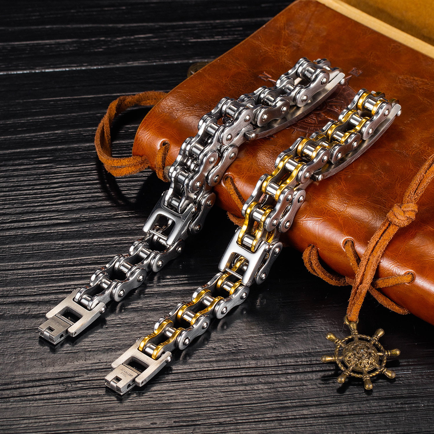 Bratara inox cu lant argintiu de motocicleta