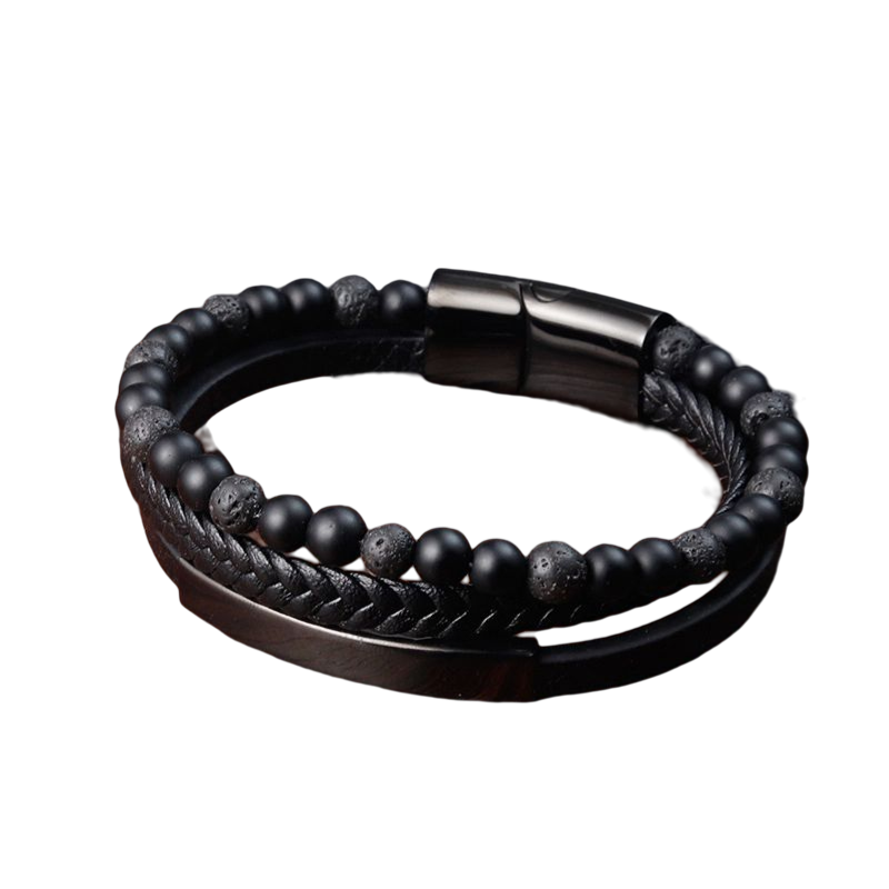 Material: Piele naturala de bovine, bazalt si inox.