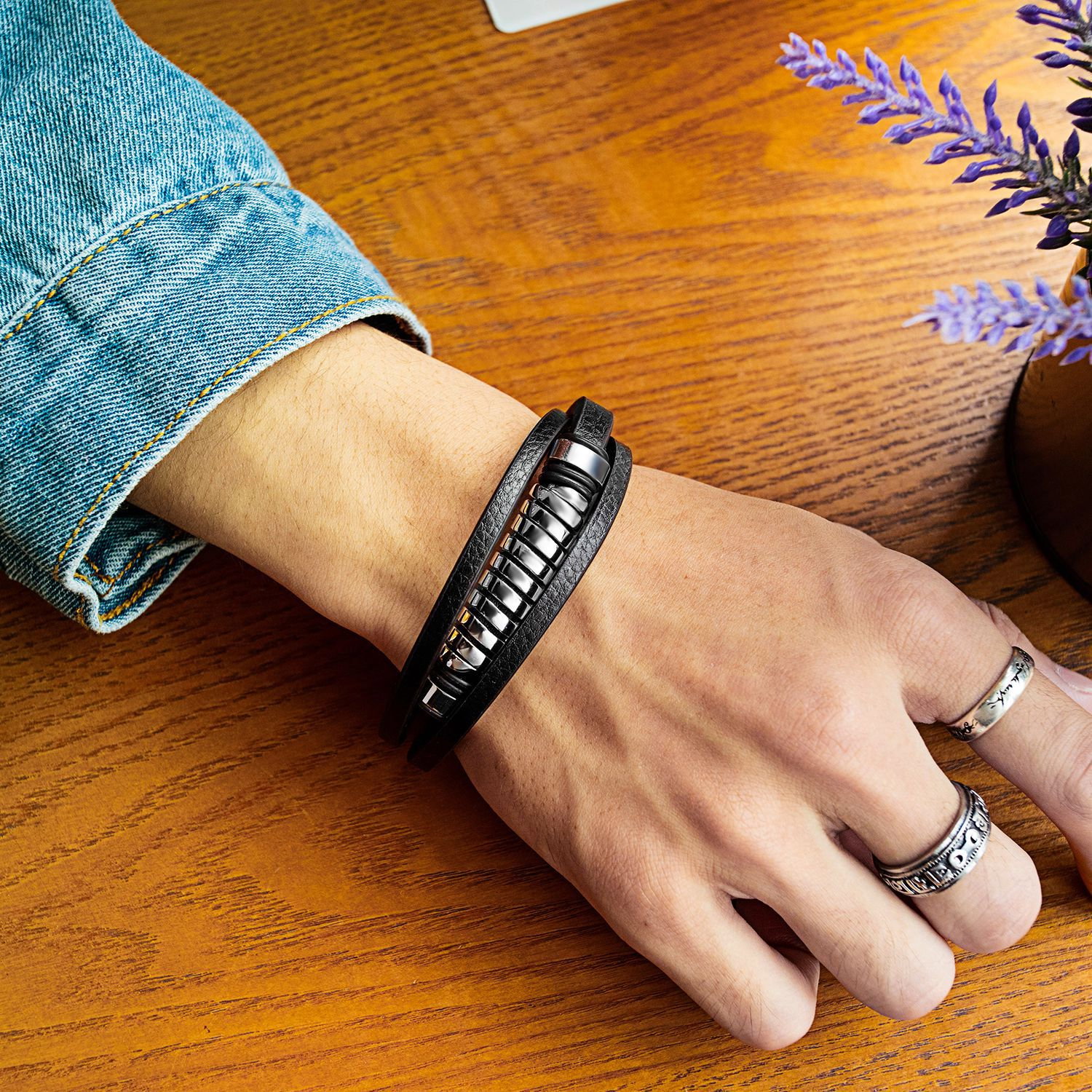 Material: Inox, piele ecologica (PU)