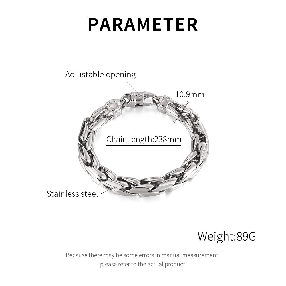 Bratara din otel inoxidabil cu zale groase, finisate perfect pentru un efect lucios si rafinat. Designul masiv ofera un echilibru intre forta si eleganta, facand-o potrivita atat pentru tinutele casual, cat si pentru cele de ocazie. Un accesoriu ideal pentru barbatii care apreciaza bijuteriile de calitate, cu prezenta si stil distinct.