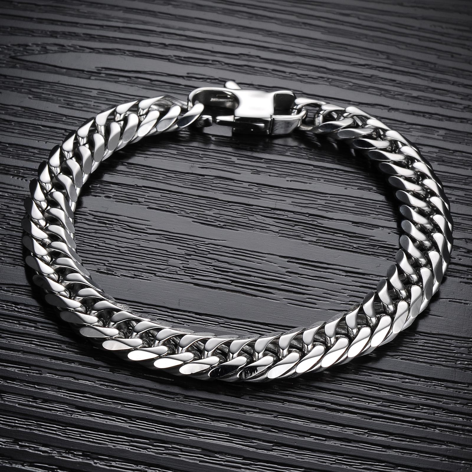 Bratara argintie din otel inoxidabil model cubanez. Lungime 20 cm, Latime 10 mm, Grosime 3 mm. Produs fabricat din inox de cea mai buna calitate, fapt ce-i confera o rezistenta crescuta la uzura si o perioada de utilizare indelungata.