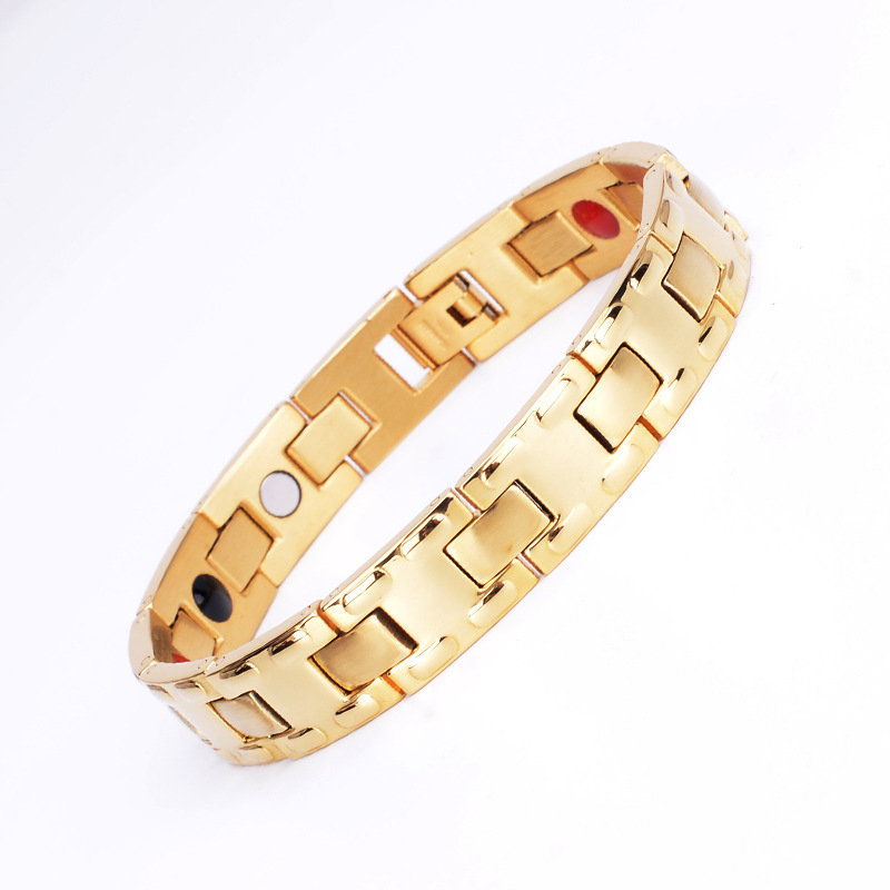 Bratara magnetica din inox Elegance. Dimensiuni: 211 x 11,5 x 3,0 cm. Lungime: 21,1 cm. Culoare:Auriu. Material: Inox. Ambalaj: Sacutel bijuterii. Această brățara magnetică elegantă poate fi un cadou perfect pentru tine sau pentru persoana specială din viața ta. Fabricată din oțel inoxidabil, un metal hipoalergenic și rezistent la coroziune, această brățară va fi una durabilă. Brățară utilizează patru dintre cele mai comune pietre terapeutice, care acționează în armonie pentru a ajuta la reducerea durerilor neuropatice, a oboselii și a tensiunii musculare, îmbunătățirea circulației, restabilirea echilibrului și a bunăstării purtătorului și pentru a sprijini creșterea energiei și a echilibrului: • Magnet de neodim: Aceștia sunt cei mai puternici magneți disponibili, cu beneficii terapeutice ca îmbunătățirea circulației sângelui si a oxigerarii și reducerea durerilor articulare, precum cele cauzate de artrită. • Anion (piatra albă): Prezența anionilor, când sunt concentrați, sprijină producția de serotonină, ceea ce poate ajuta la reducerea stresului și creșterea nivelului de energie. • Infraroșu (piatra roșie - turmalina): Emiterea energiei infraroșii ajută la ridicarea ușoară a temperaturii suprafeței corpului, stimulând funcțiile naturale de vindecare (sistemul imunitar) si de detoxifiere și ameliorând durerile cronice. • Germaniu (piatra neagră): Germaniul emite ioni negativi si combate ionii pozitivi emisi de aparatele electrocasnice, fapt ce poate ajuta la cresterea nivelului de serotonina si implicit la instalarea starii de bine, la intarirea sistemului imunitar si la reducerea oboselii. Brățara ajuta la ameliorarea unor afecțiuni precum depresia, durerile articulare, stresul și oboseala, oferind energie și vitalitate. Înainte de a începe terapia cu brățara magnetică, este important să consultați un specialist medical, mai ales dacă aveti dispozitive medicale implantate sau afecțiuni specifice, cum ar fi epilepsia. Bratara nu este recomandata in timpul sarcinii si alaptarii! Această brățară va poate aduce o serie de beneficii pentru bunăstarea dvs. generală, însă consultarea cu un profesionist medical este întotdeauna recomandată înainte de a începe orice formă de terapie alternativă.