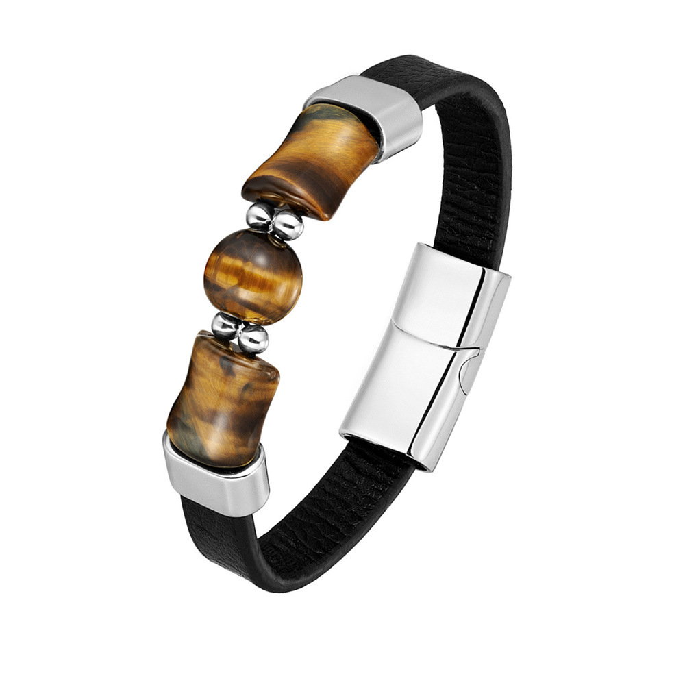 Dimensiuni: Latime banda piele 1 cm. Dimensiuni pietre 15x12 mm si 8 mm diametru.