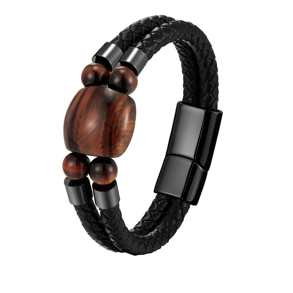 Bratara piele naturala cu Ochi de Tigru si inchizatoare din inox negru