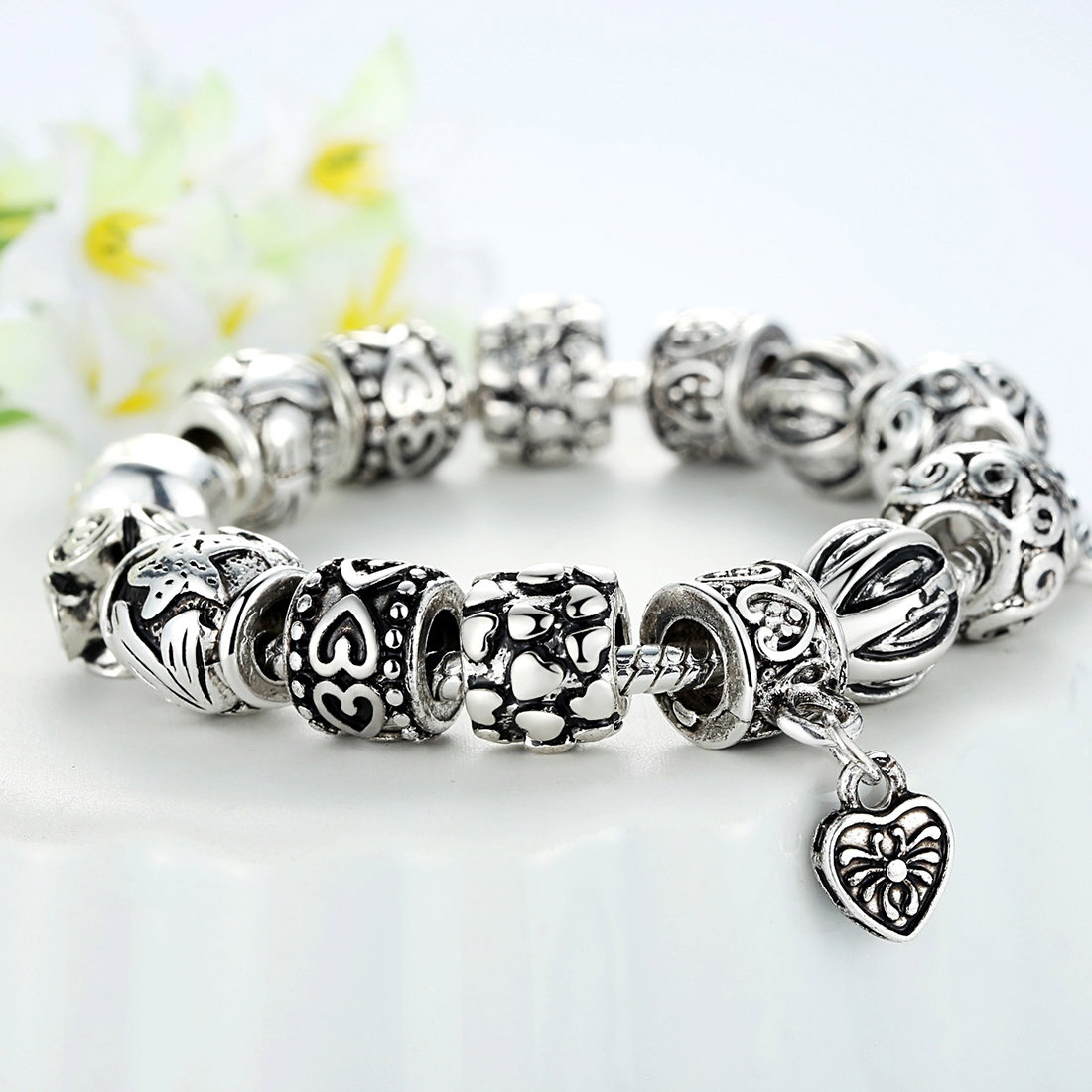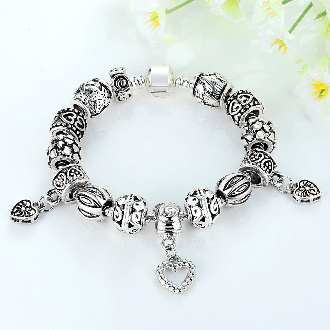 Dimensiuni: Grosime bratara: 3 mm; Diametru talismane: 10 mm