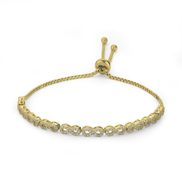 Bratara tenis cu simbolul Infinitului din argint 925, placata cu aur, cu zirconii albe, reglabila; Greutate: 5,7 grame