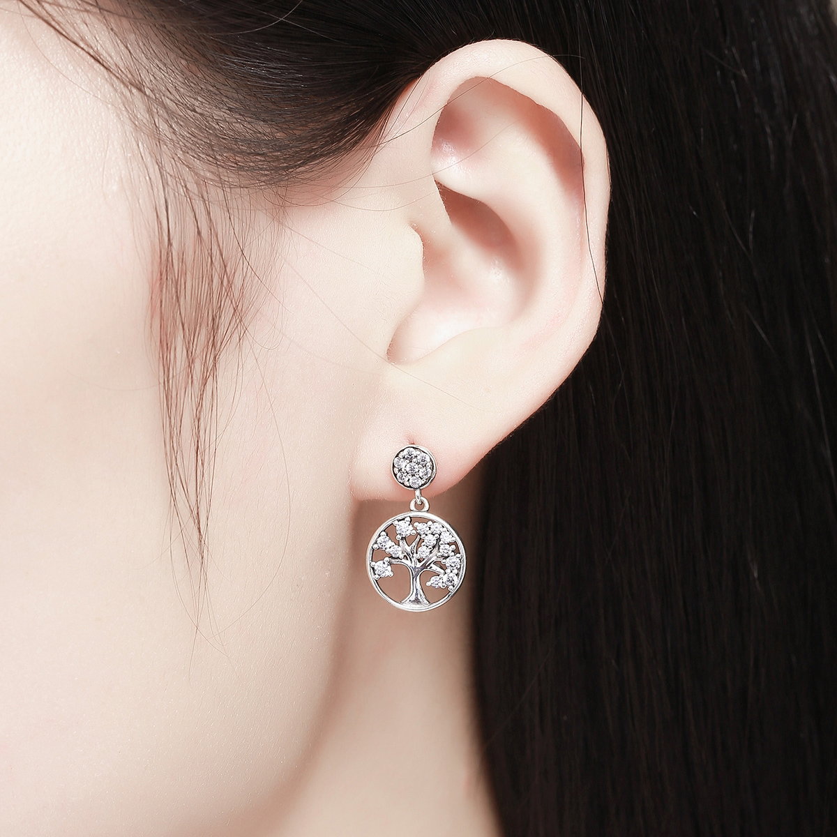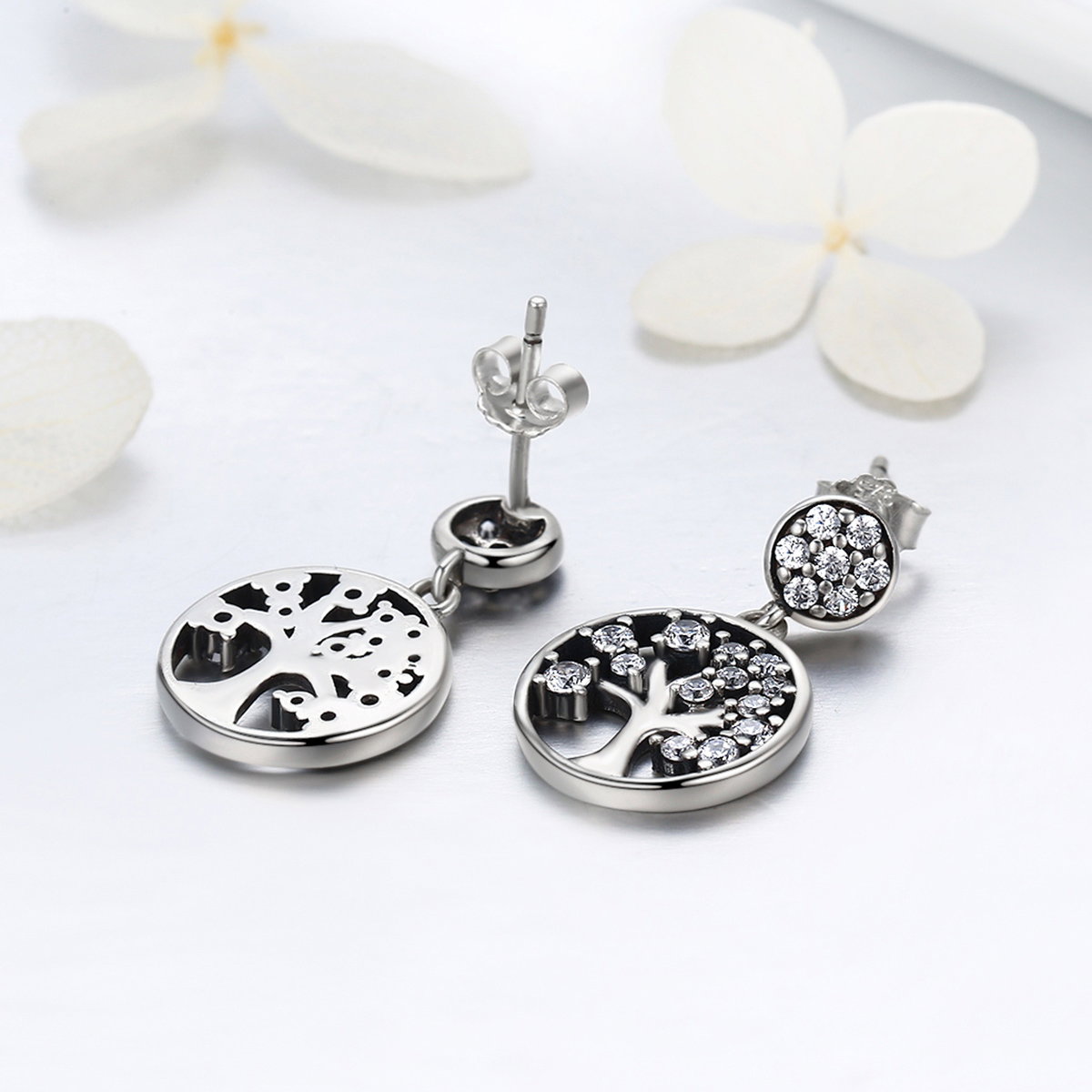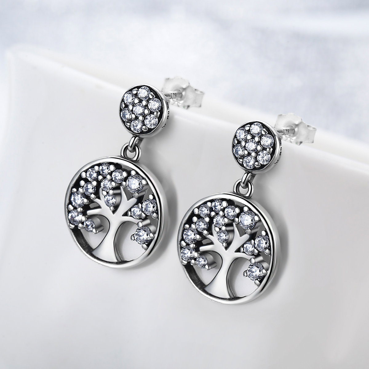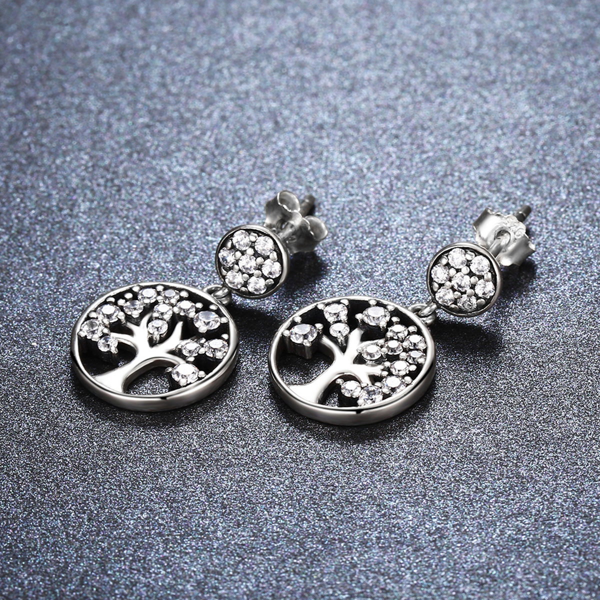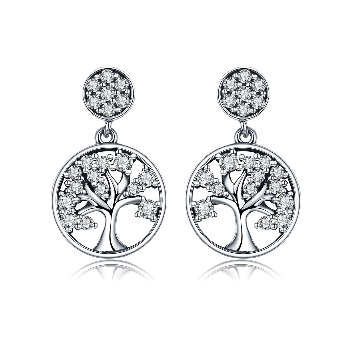 Cercei argint 925 cu copacul vietii si zirconii albe - Be Nature EST0006
