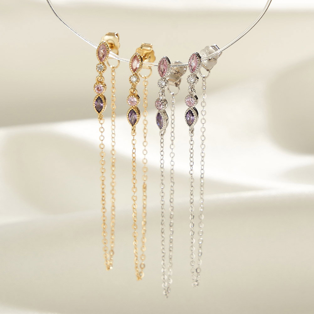 Dimensiuni: 13 mm, Pietre: 2*4 mm, 1,5 mm, 2 mm, Grosime lant: 1 mm, Greutate: 1,38 grame