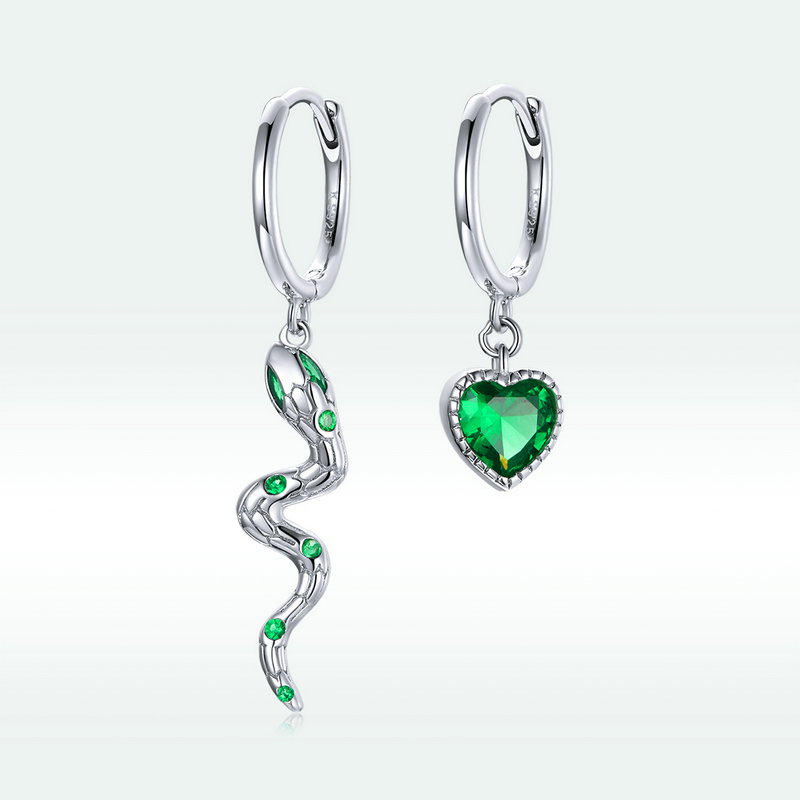 Dimensiuni: Inaltime x Latime sarpe: 3,4 x 1,2 cm, Inaltime x Latime inima: 2,2 x 1,2 cm, Piatra: 0,5 x 0,5 cm, Greutate: 2.3 grame.