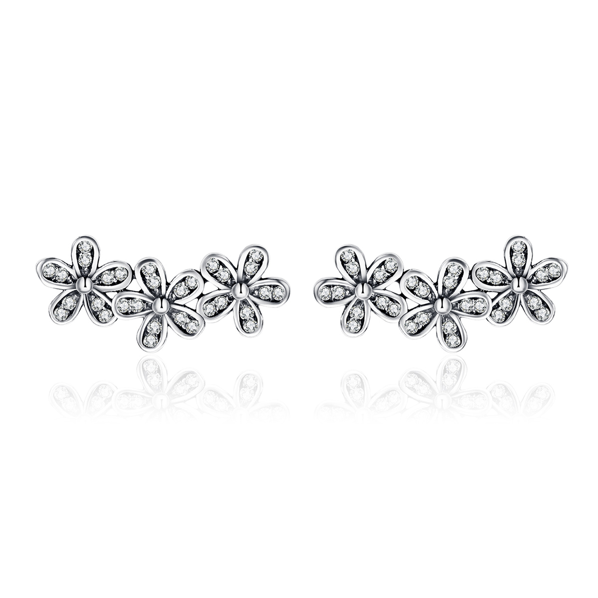 Cercei argint cu flori. Materiale: Argint 925, Zirconiu. Culoare: Argintiu. Inaltime x Latime: 1,7 x 0,8 cm