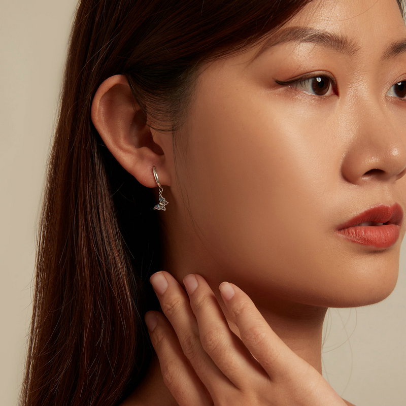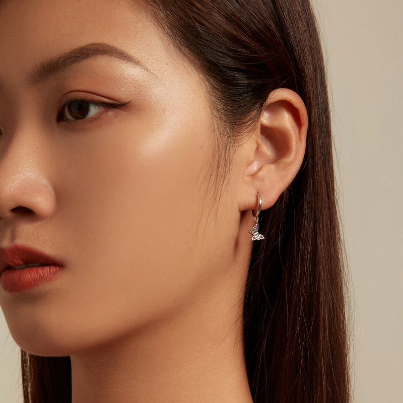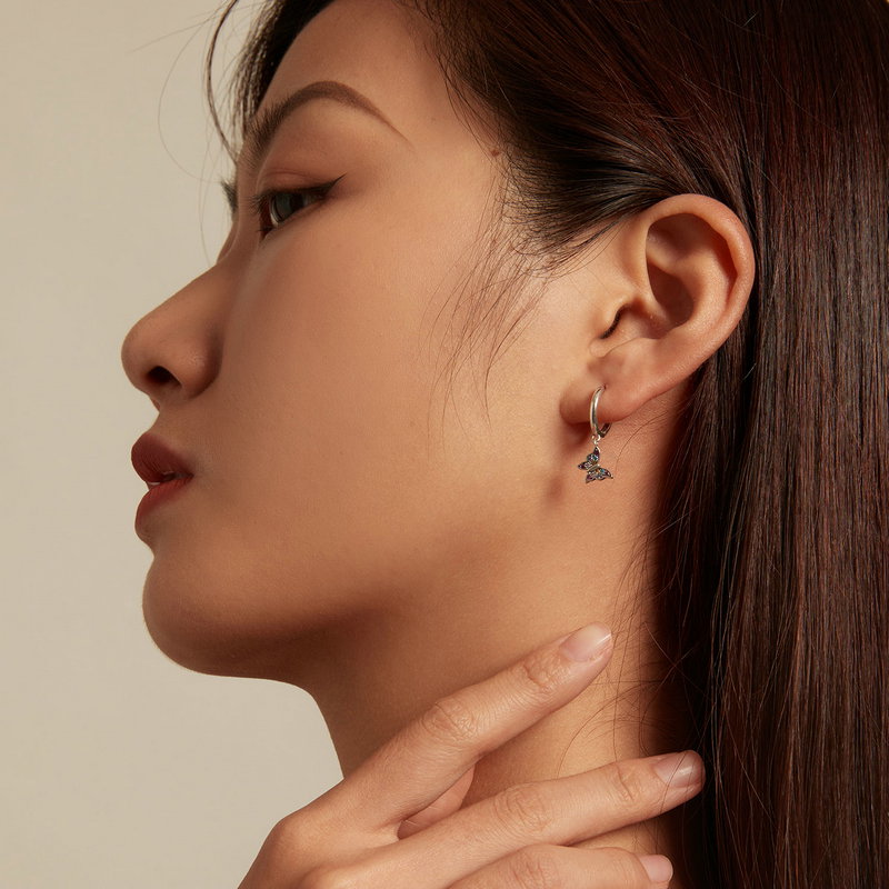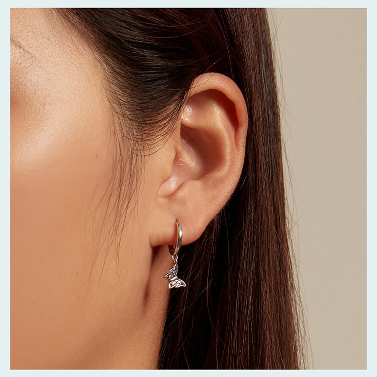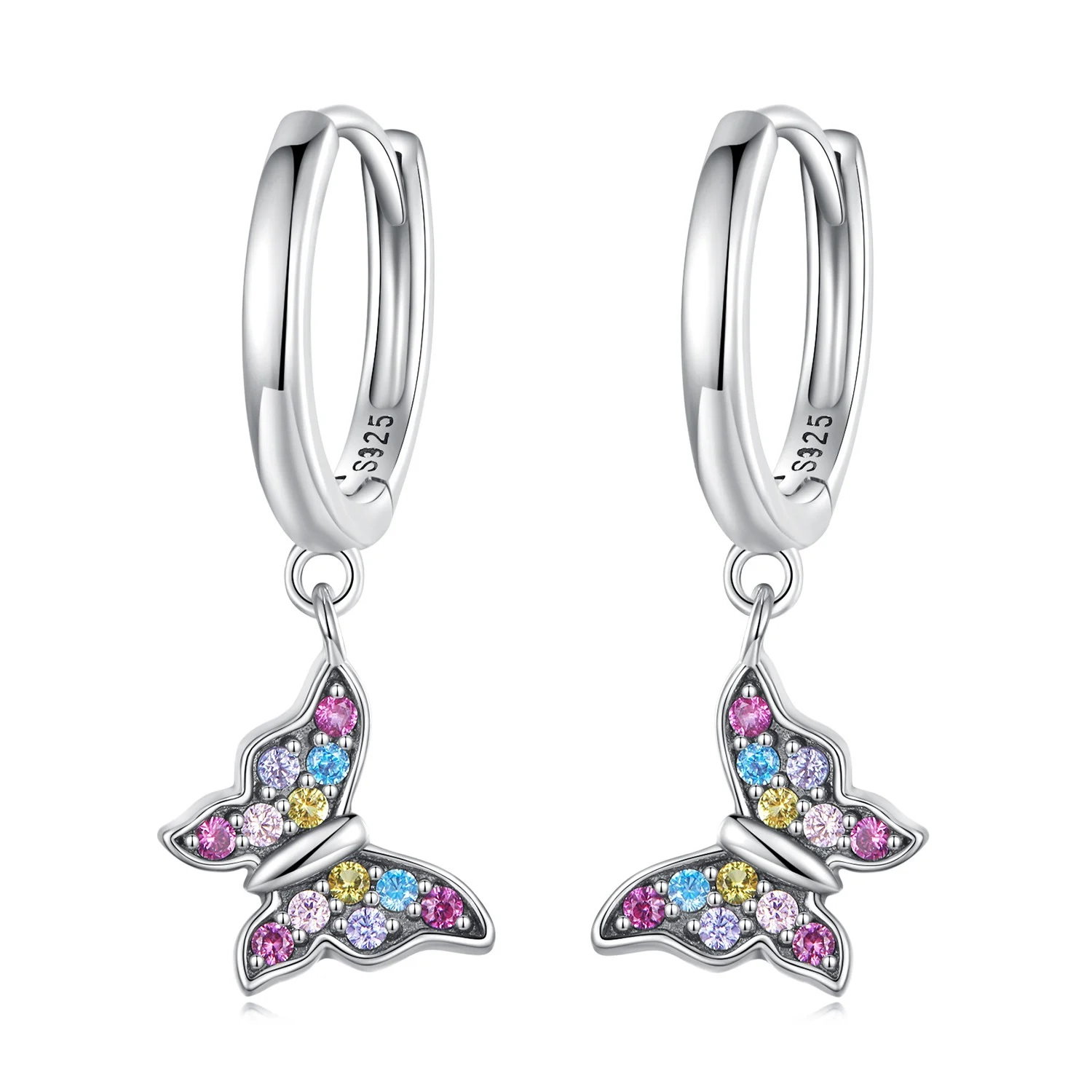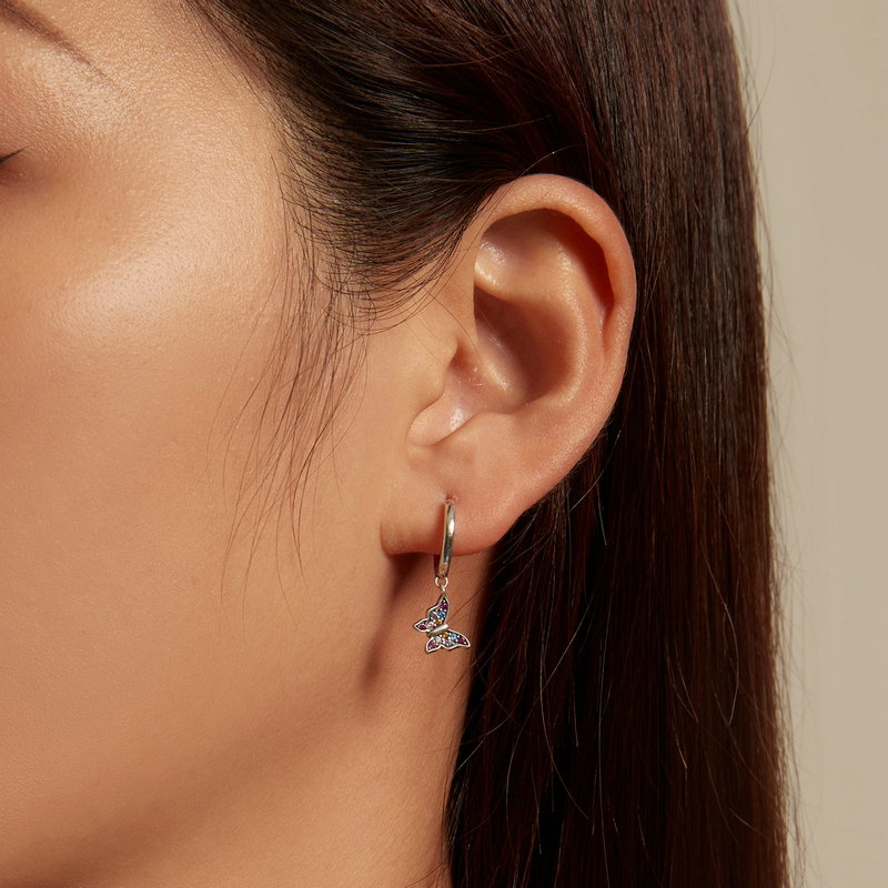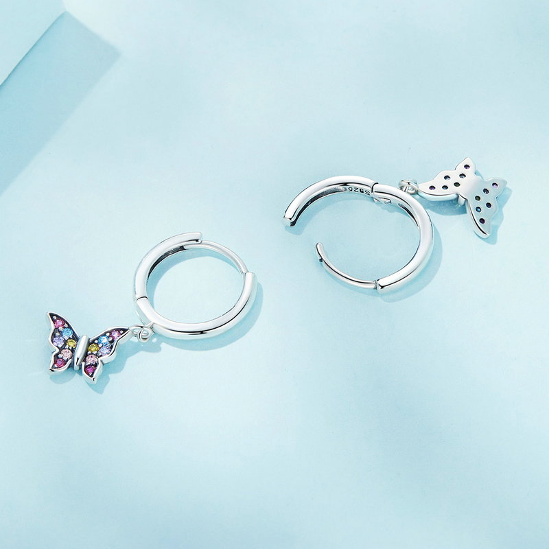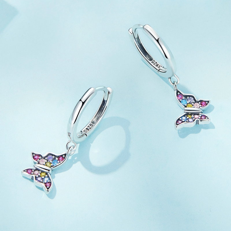 Cercei argint cu fluturasi colorati. Materiale: Argint 925, Zirconiu. Culoare: Multicolor. Inaltime x Latime: 2,3 x 0,95 cm, Diametru interior: 0,9 cm