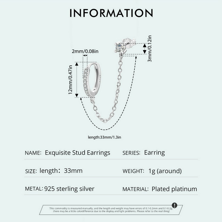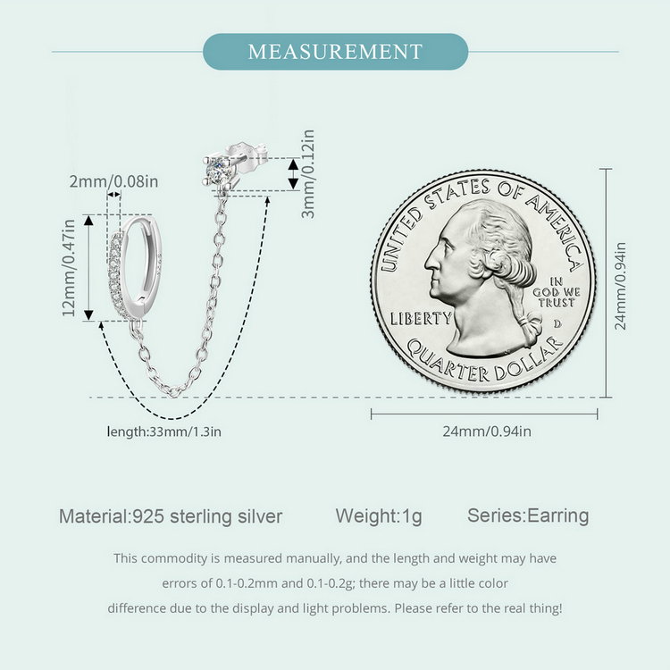 Dimensiuni: Piatra 3 mm,Cercel rotund 12 x 2 mm, Diametru interior 9,5 mmLungime 33 mm, Greutate 1 grame