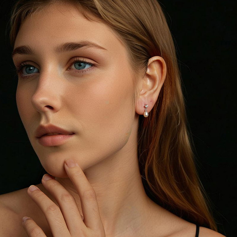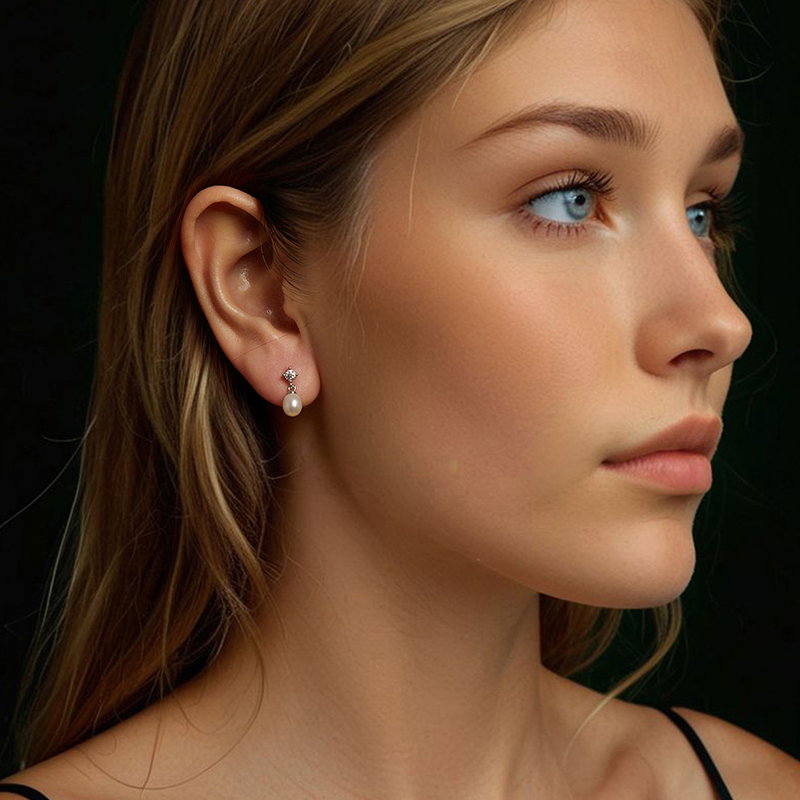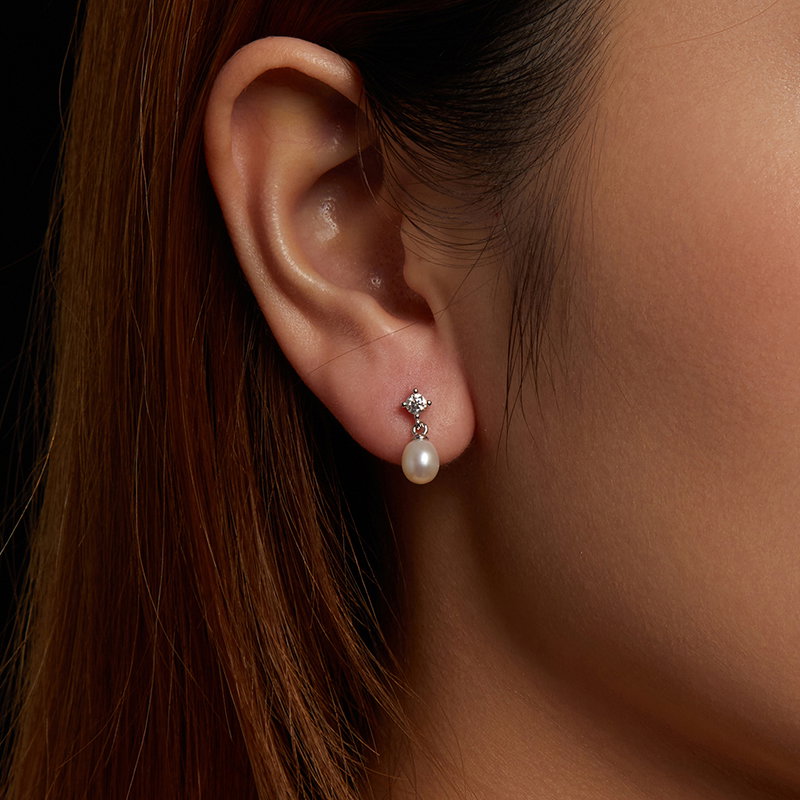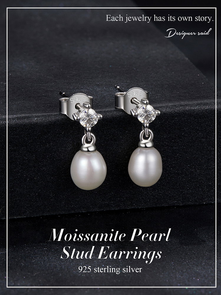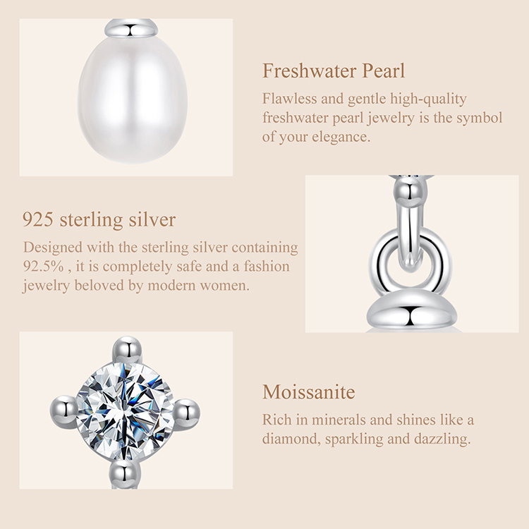 Material: Argint 925 placat cu rodiu, Perle de Cultura, Moissanit