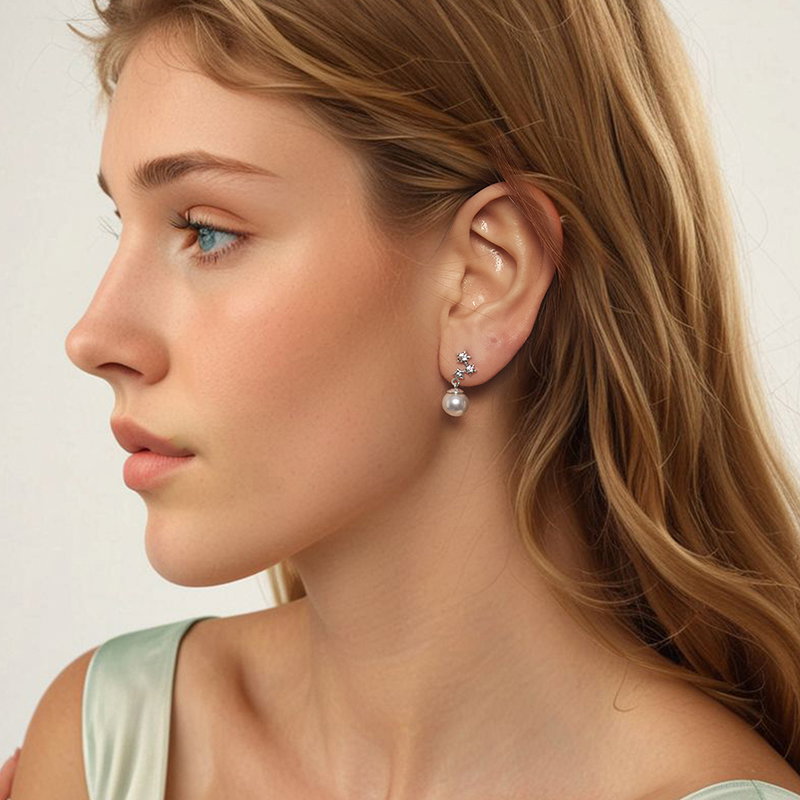 Material: Argint 925 placat cu rodiu, Perle prelucrate din cochilii de scoici, Zirconii