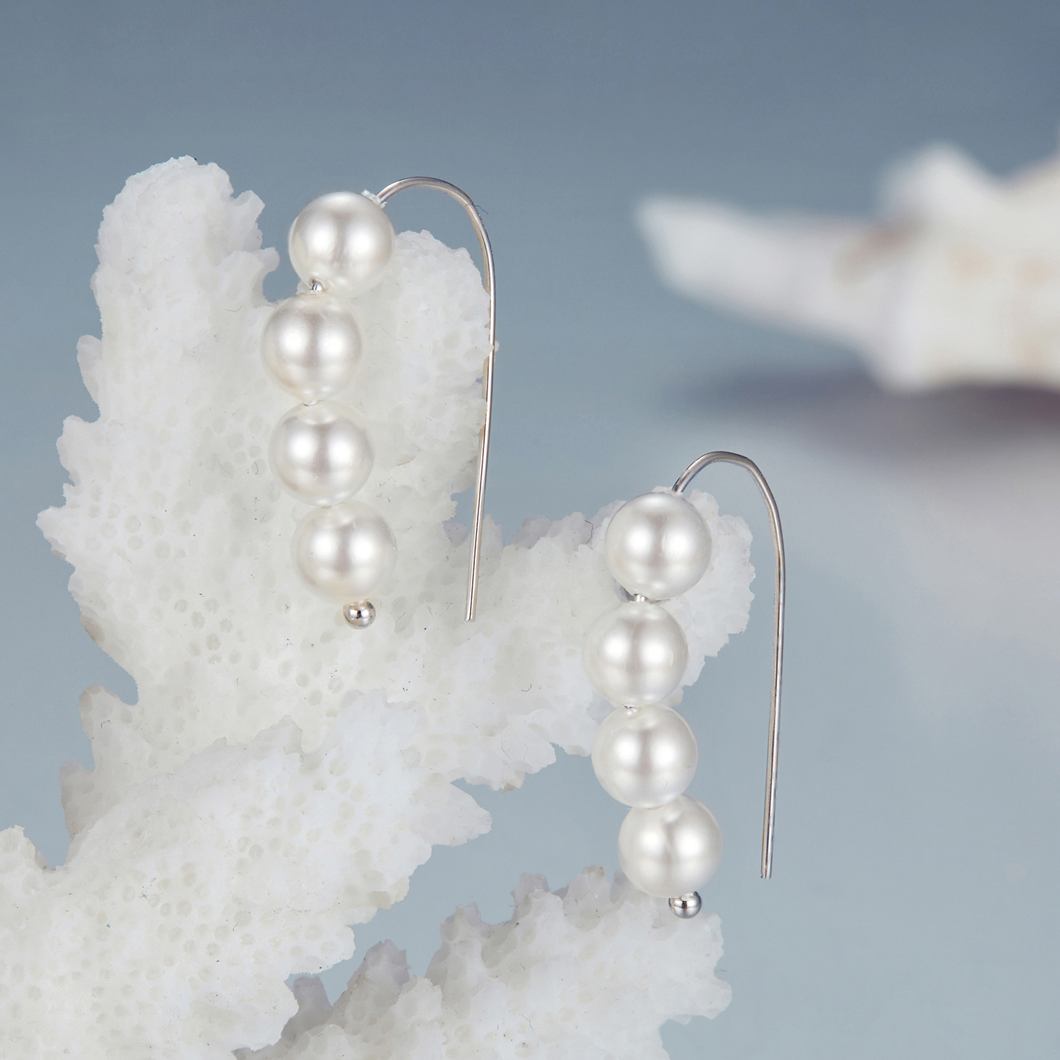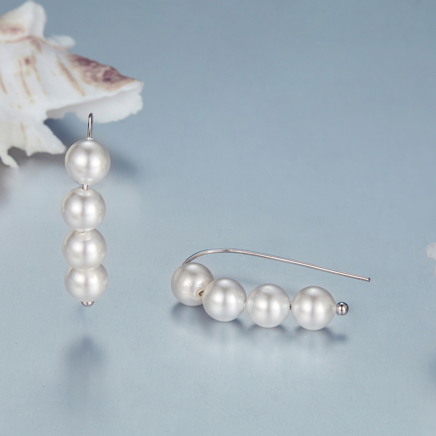 Material: Argint 925 placat cu rodiu, Perle prelucrate din cochilii de scoici (imitatii)