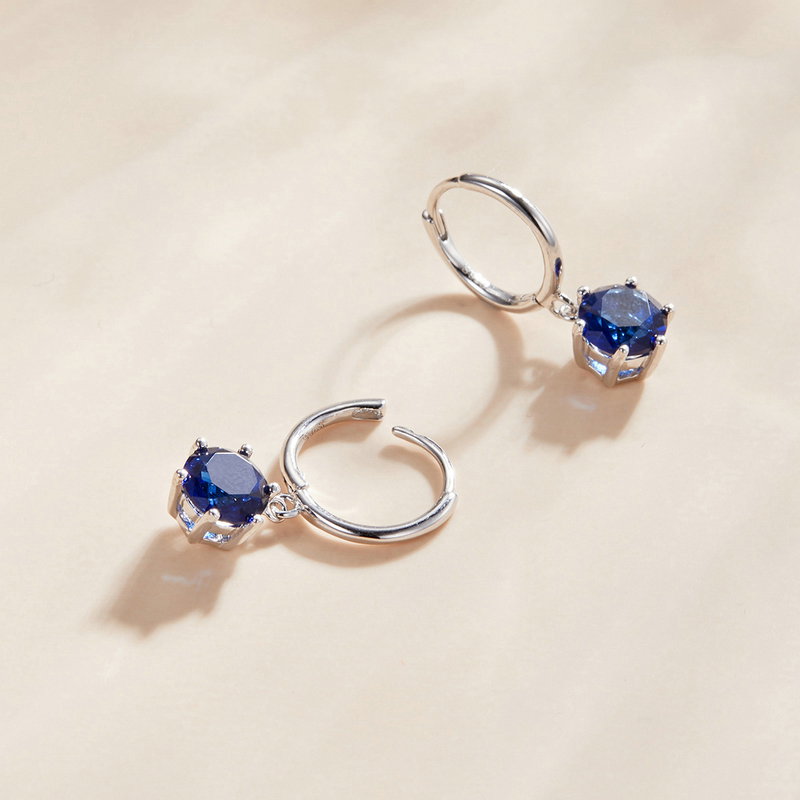 Cercei argint cu zirconii picatura. Materiale: Argint 925, Zirconiu, Placat cu Rodiu. Culoare: Albastru. Inaltime x Latime: 2,2 x 1,2 cm, Greutate: 2.2 grame.