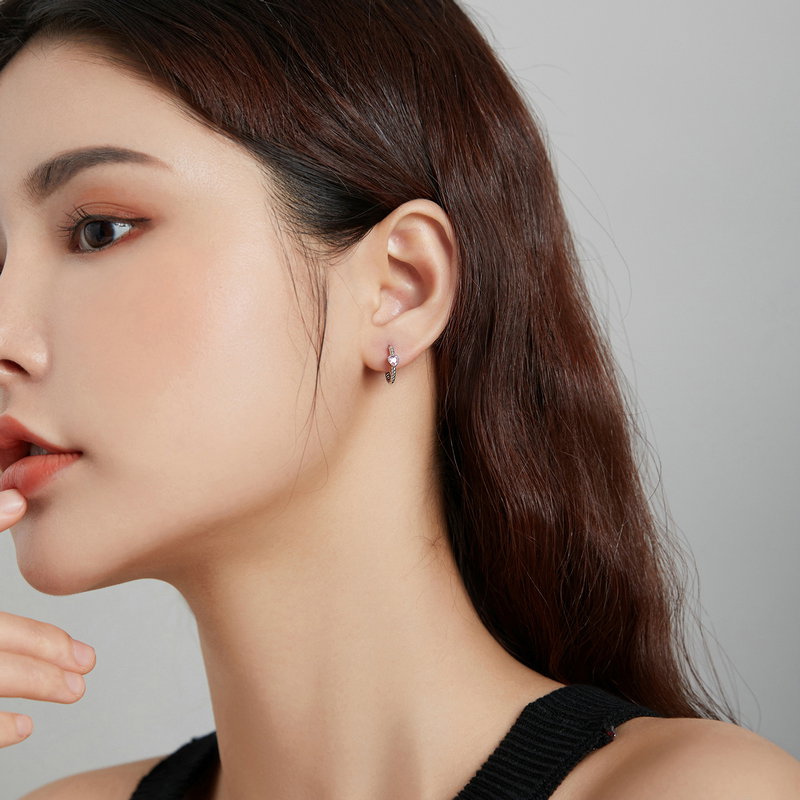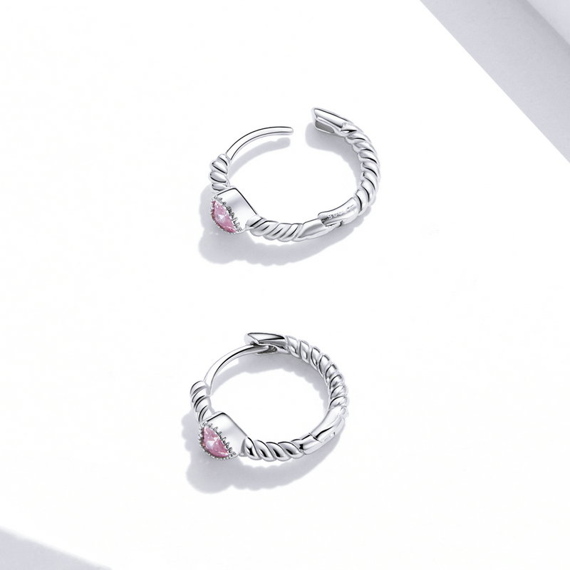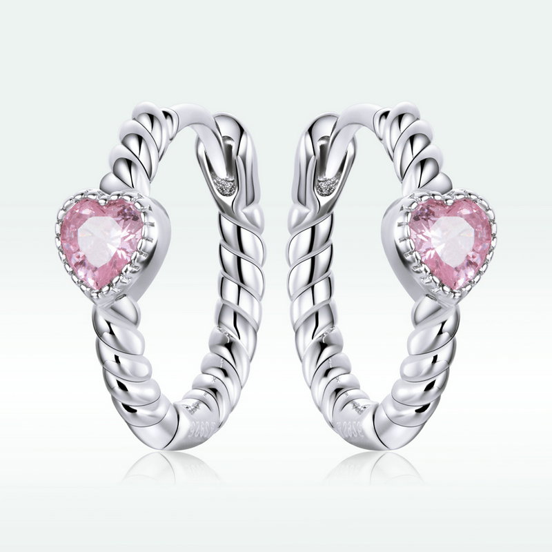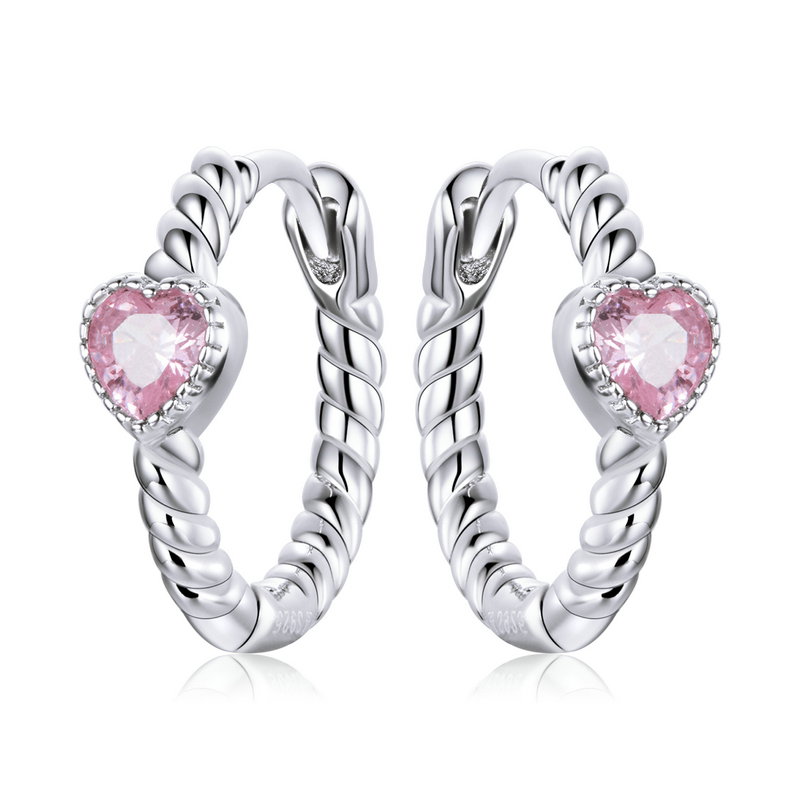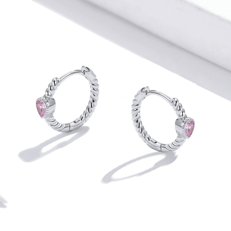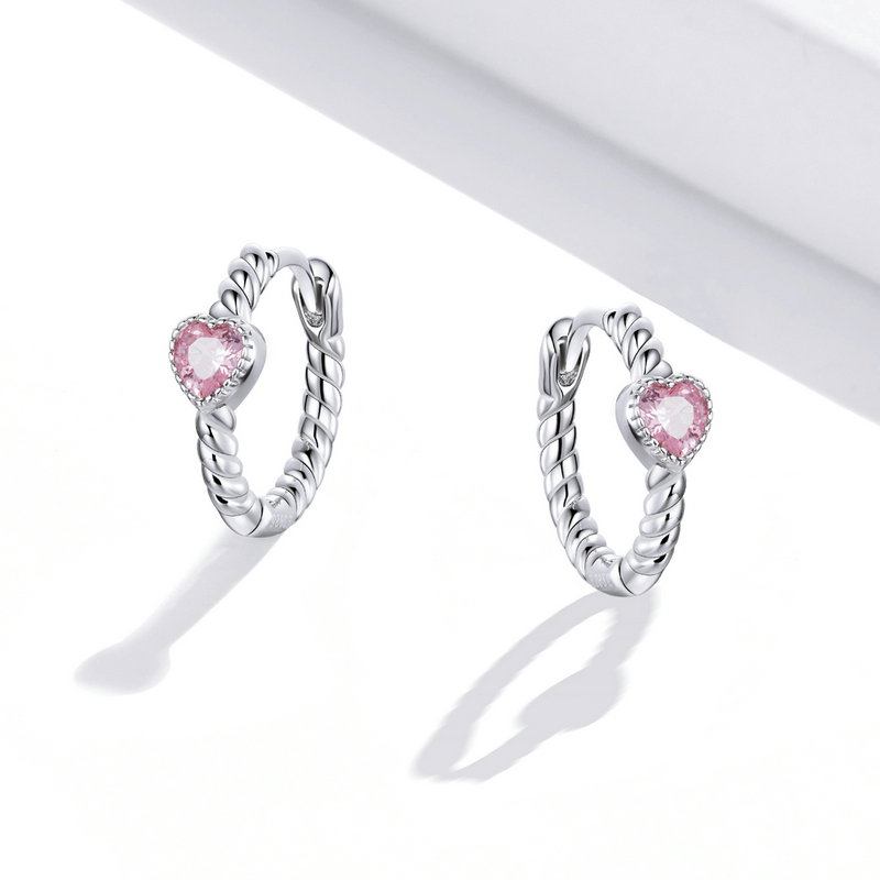 Cercei argint dragoste pura. Materiale: Argint 925, Zirconiu, Placat cu Rodiu. Culoare: Roz. Inaltime x Latime: 1,3 x 0,4 cm