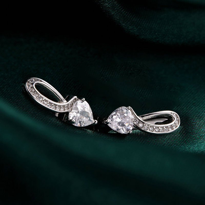 Cercei argint eleganti cu inimioare . Dimensiuni: 15 x 6 mm;Diametru interior tortita: 12 mm. Material: Argint 925 placat cu rodiu, Zirconiu. Culoare: Argintiu. Pietre: Zirconiu. Greutate: 3,1 grame .