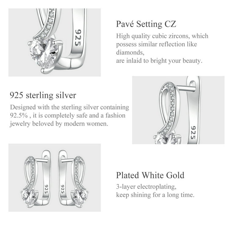 Inima stralucitoare a acestor cercei din argint 925 aduce un strop de bucurie in orice moment. Designul delicat, cu forme fluide si detalii rafinate, transforma fiecare aparitie intr-o declaratie de stil. Purtati la o cina romantica sau la o intalnire cu prietenii, acesti cercei vor adauga o nota de feminitate si incredere. Fiecare clipire va reflecta lumina, oferindu-va o aura de eleganta. Alege sa te simti speciala si admirata in fiecare zi.
