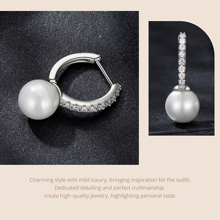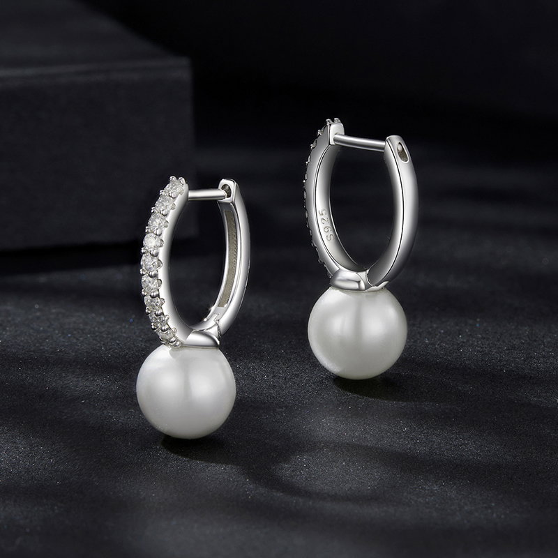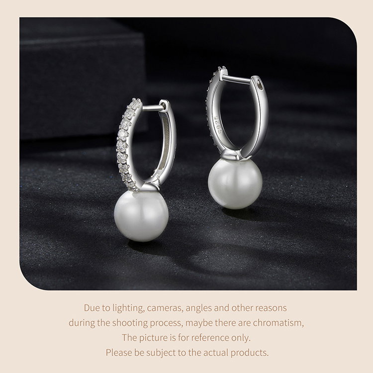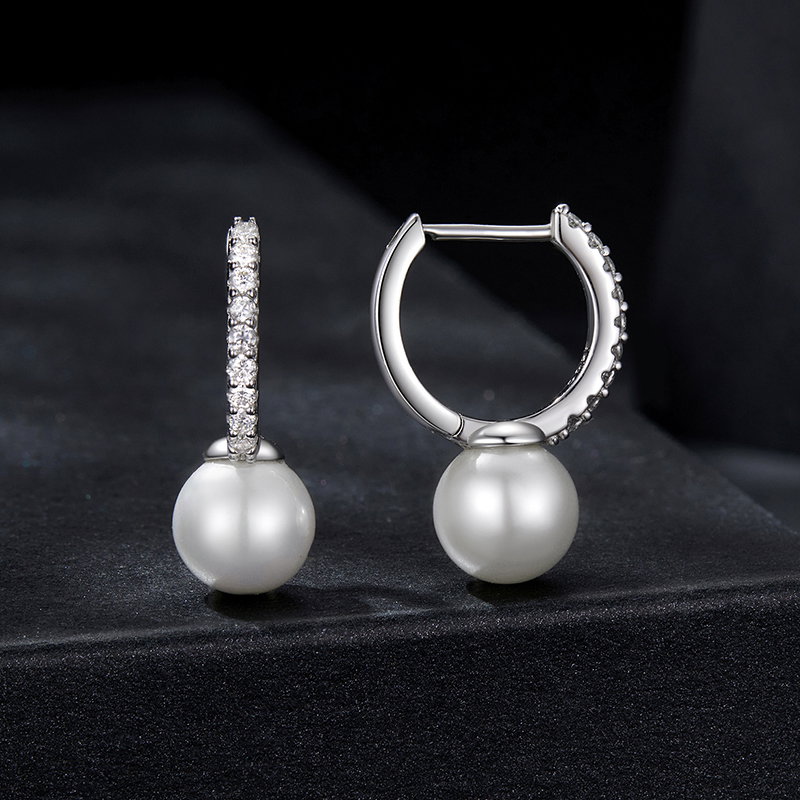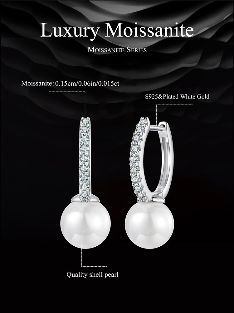 Material: Argint 925 placat cu rodiu, Perle prelucrate din scoica (imitatii), Moissanit
